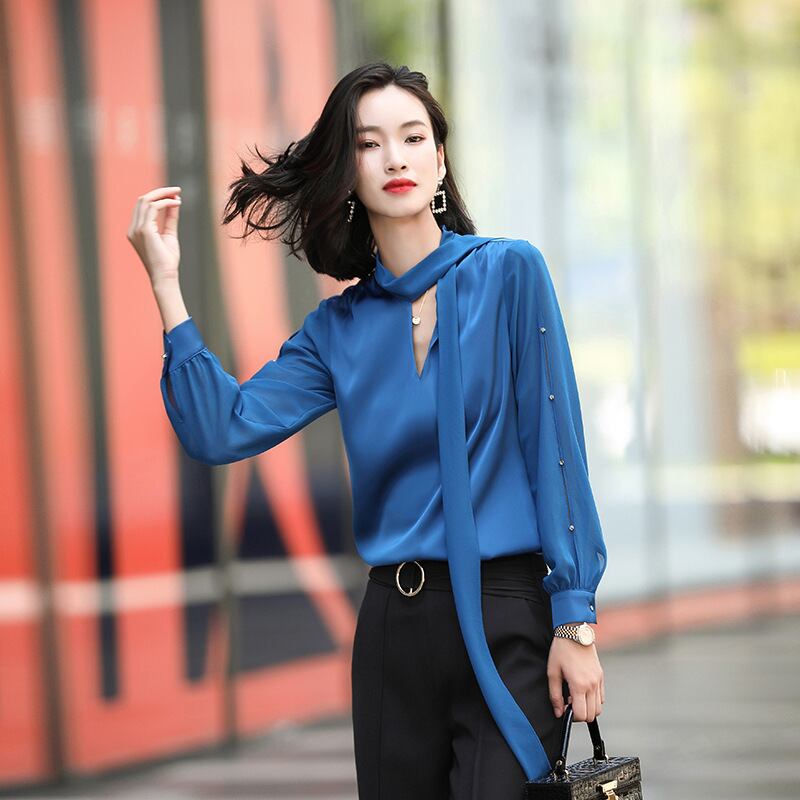 【新作】【送料無料】 本物の酢酸サテンシャツ女性の2020年春と秋の新しいスタイルのルーズラージサイズシャツ気質プロの服のトレンド-アリババ 大きめサイズ スプリング 春物 オータム 秋物 12b250067745224