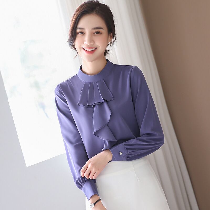 【新作】【送料無料】 リアルのオールマッチ気質アセテートサテンプロフェッショナルウェアシャツ2020新しい秋の長袖薄いアンチリンクルシャツの女性-アリババ ロング オータム 秋物 12b273965744877