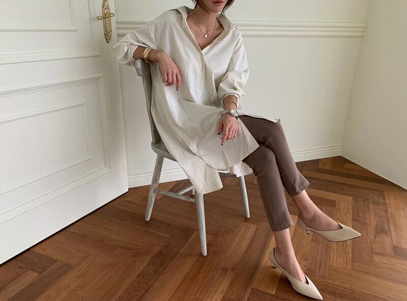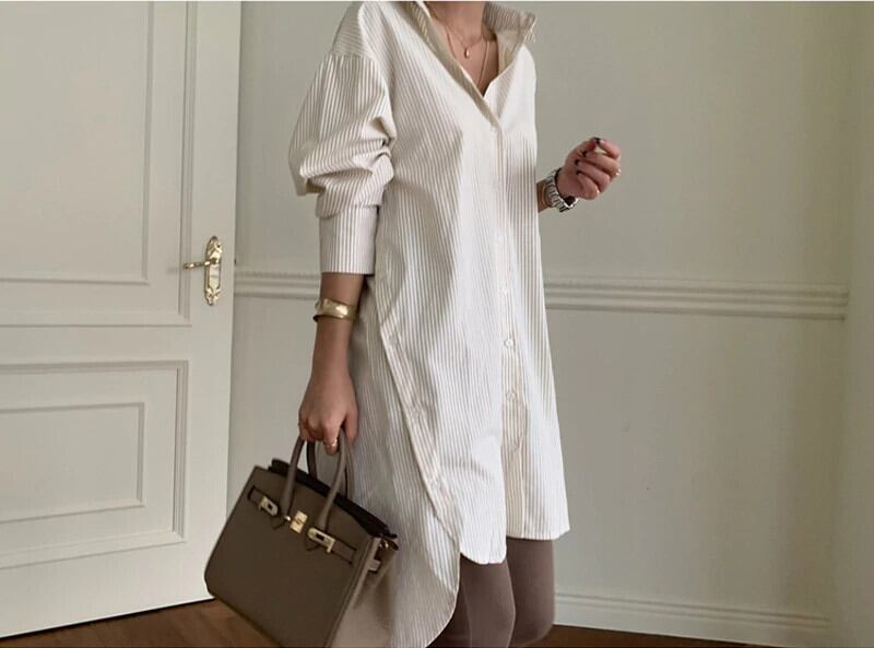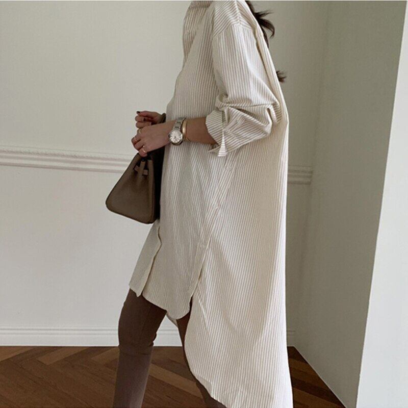 【新作】【送料無料】 春のロングストライプ女性ブラウスシャツブラウストップスフルスリーブコットン特大ブラウス スプリング 春物 12b13446366754