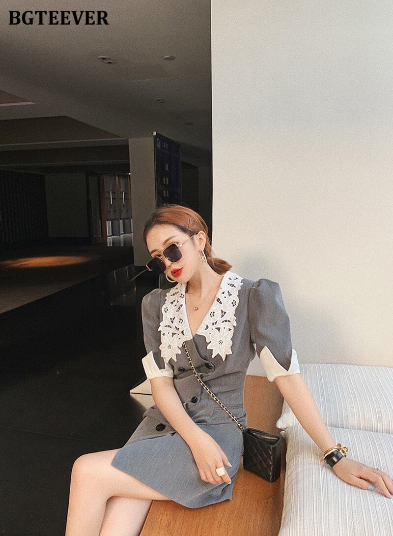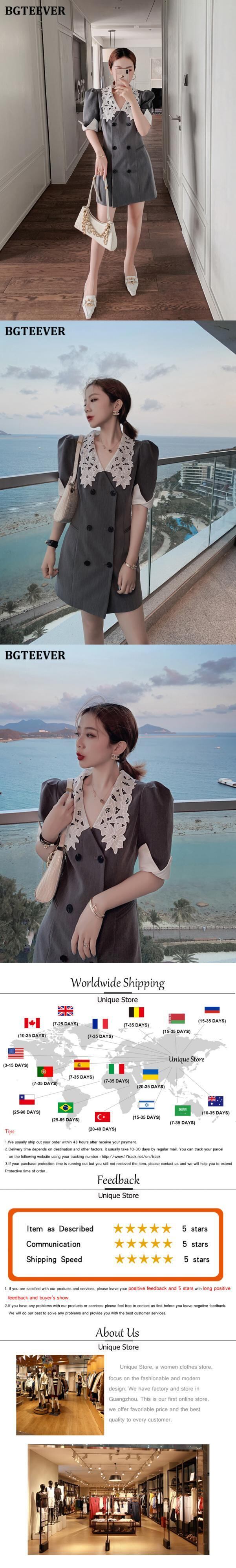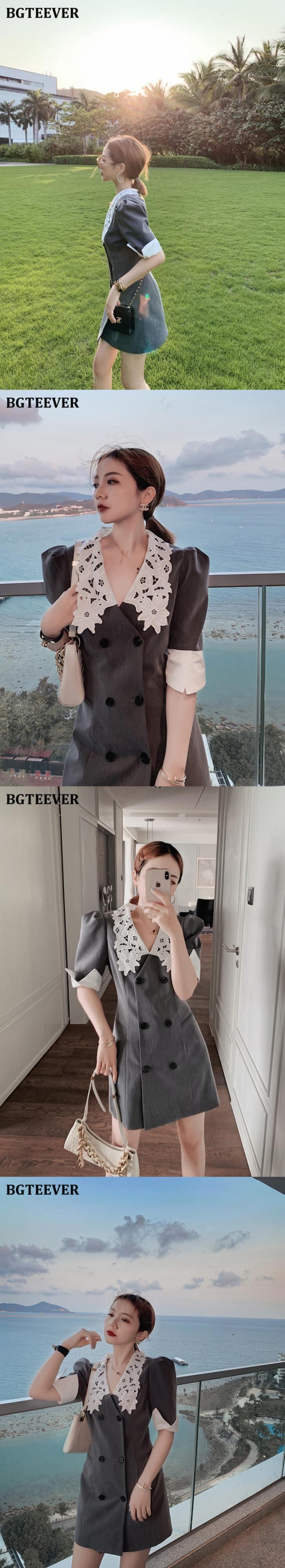 【新作】【送料無料】 BGTEEVERレースパッチワークハーフスリーブダブルブレスト女性ミニドレススリムウエストショートドレス2020夏 半袖 サマー 夏物 12b174107067212