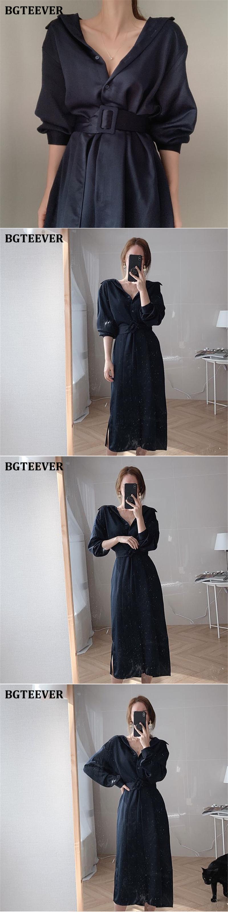 【新作】【送料無料】 BGTEEVERシックなシングルブレストの女性ロングドレスフルスリーブベルトサッシAラインドレス年夏 サマー 夏物 ハーネス 12b177964209737