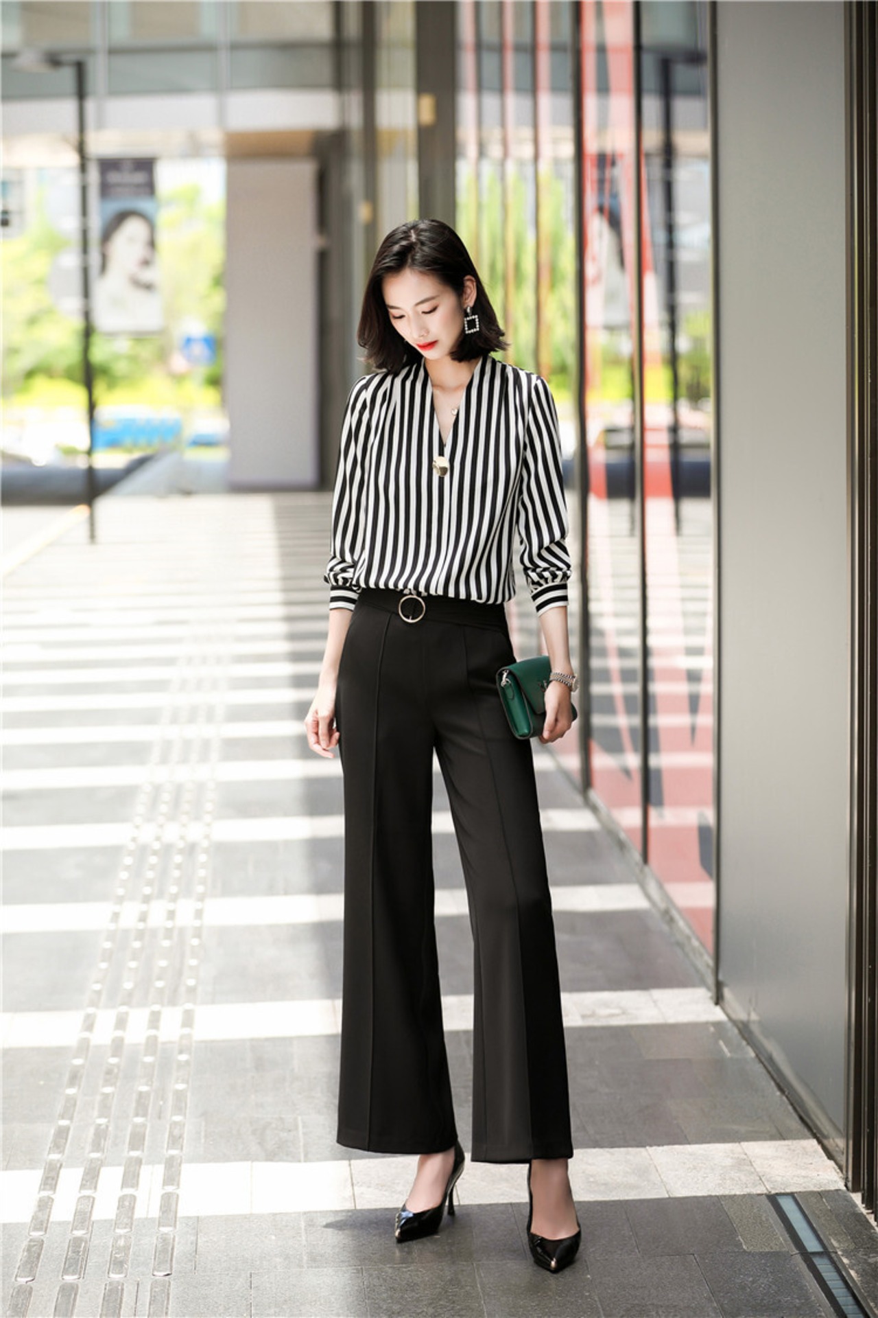 【新作】【送料無料】 黒と白のストライプの大きいサイズのルーズシャツの女性の本物のバージョン2020春と秋のファッショントップデザインのトレンディなシャツ-アリババ ホワイト ブラック 大きめサイズ スプリング 春物 オータム 秋物 12b277373015688