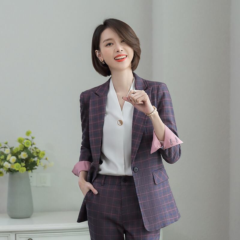 【新作】【送料無料】 Real s2020春秋新気質カジュアルプロスーツレディースツーピースインタビューワークウェアプラスサイズスーツ-アリババ 大きめサイズ スプリング 春物 オータム 秋物 12b245548080330