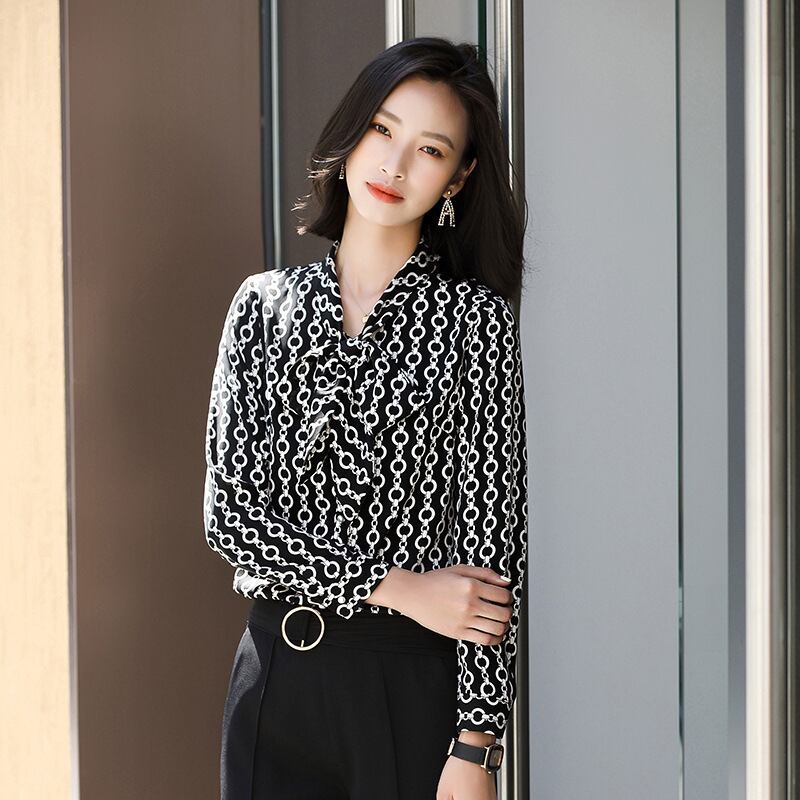 【新作】【送料無料】 リアルの長袖気質プリントシンプルシャツレディース2020春秋新プラスサイズルーズシャツファッション-アリババ ロング 大きめサイズ スプリング 春物 オータム 秋物 12b219402258068