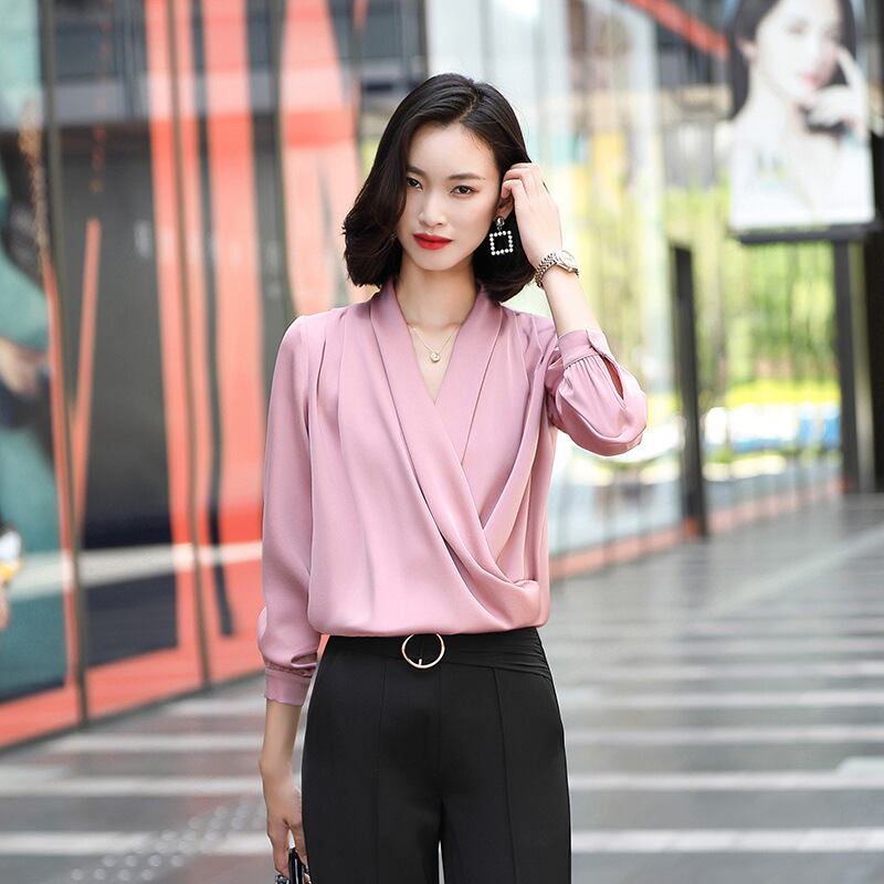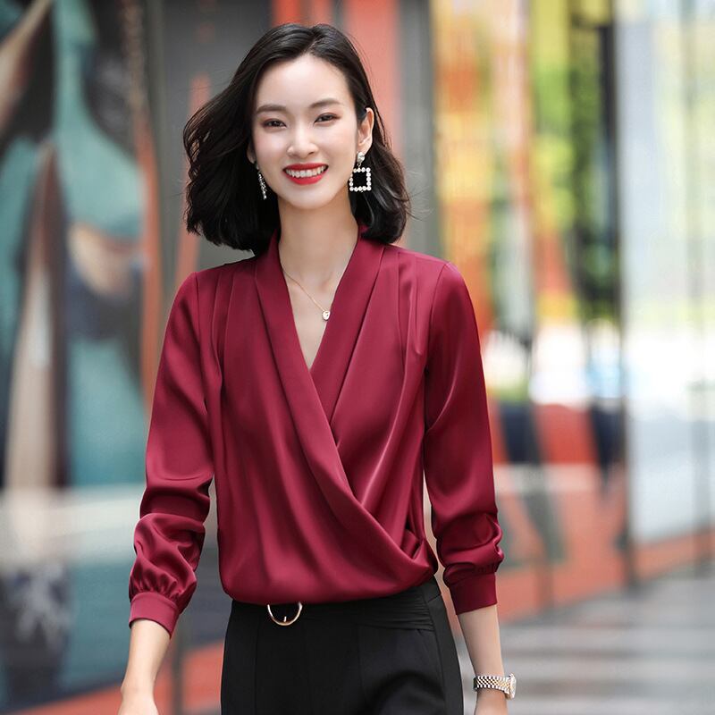 【新作】【送料無料】 リアルの無地のラージサイズデザインシャツレディースアセテートサテントップス2020春秋新作長袖シャツトレンド-アリババ ロング 大きめサイズ スプリング 春物 オータム 秋物 ソリッドカラー 12b265304793615