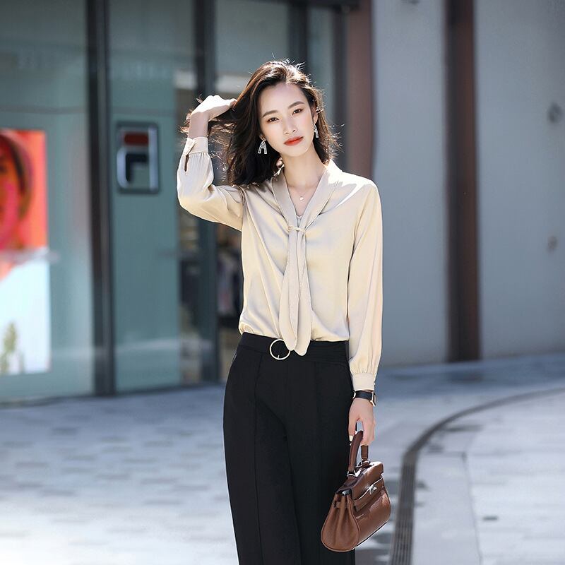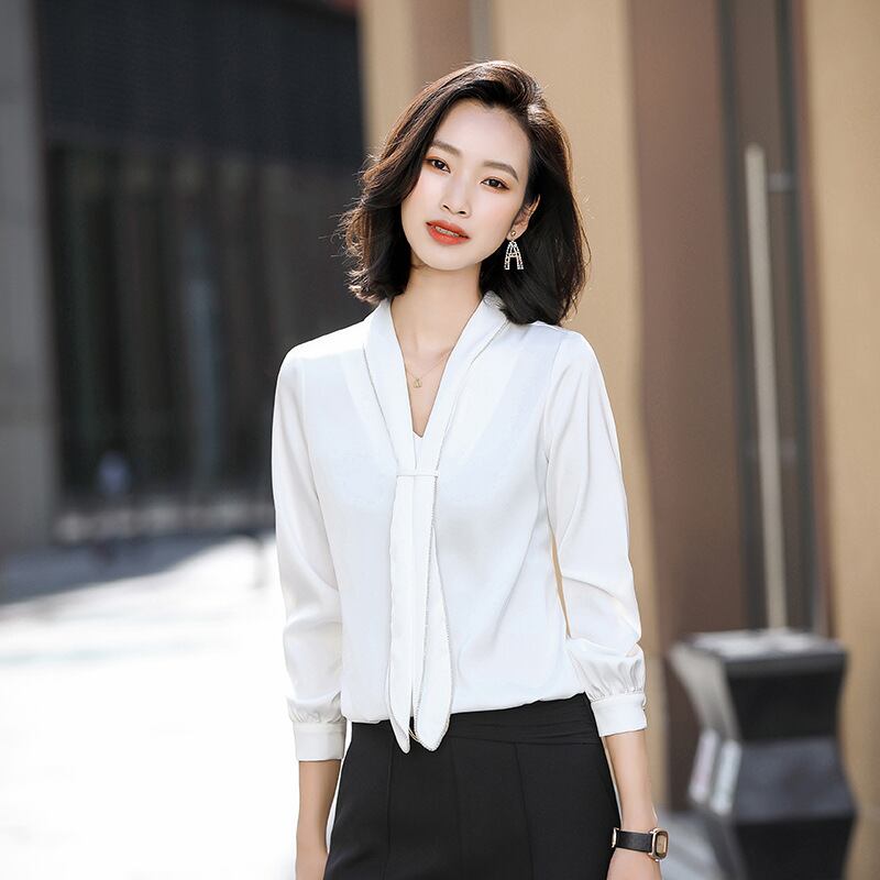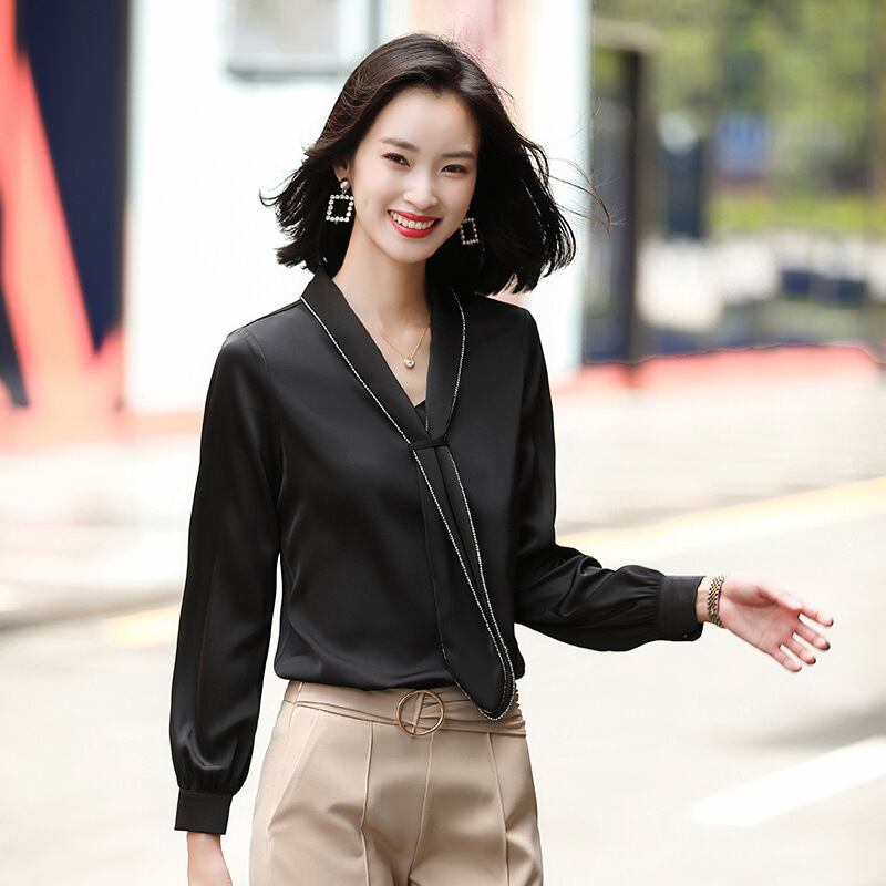 【新作】【送料無料】 本物の気質プロウェアラージサイズ2020春秋新作シャツレディースアセテートサテンシャツデザインセンスニッチ-アリババ 大きめサイズ スプリング 春物 オータム 秋物 12b26265211611