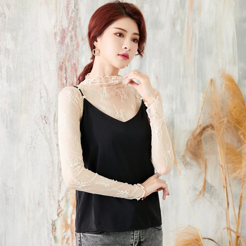 【新作】【送料無料】 Real s2020新しいレースボトミングシャツレディースインナーウェア春と秋の長袖中空スモールシャツルーズメッシュトップ-アリババ ロング スプリング 春物 オータム 秋物 12b258526151455