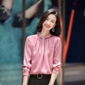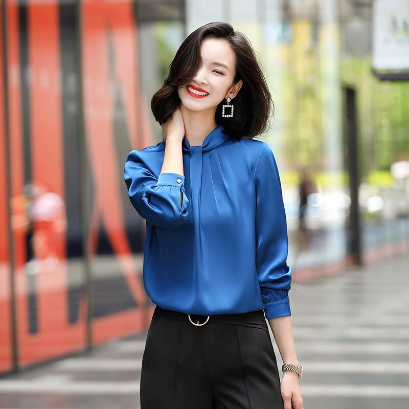 【新作】【送料無料】 リアルの長袖プラスサイズ気質プロウェア2020年春秋新作シャツレディースアセテートサテンシャツデザインセンス-アリババ ロング 大きめサイズ スプリング 春物 オータム 秋物 12b211642616473