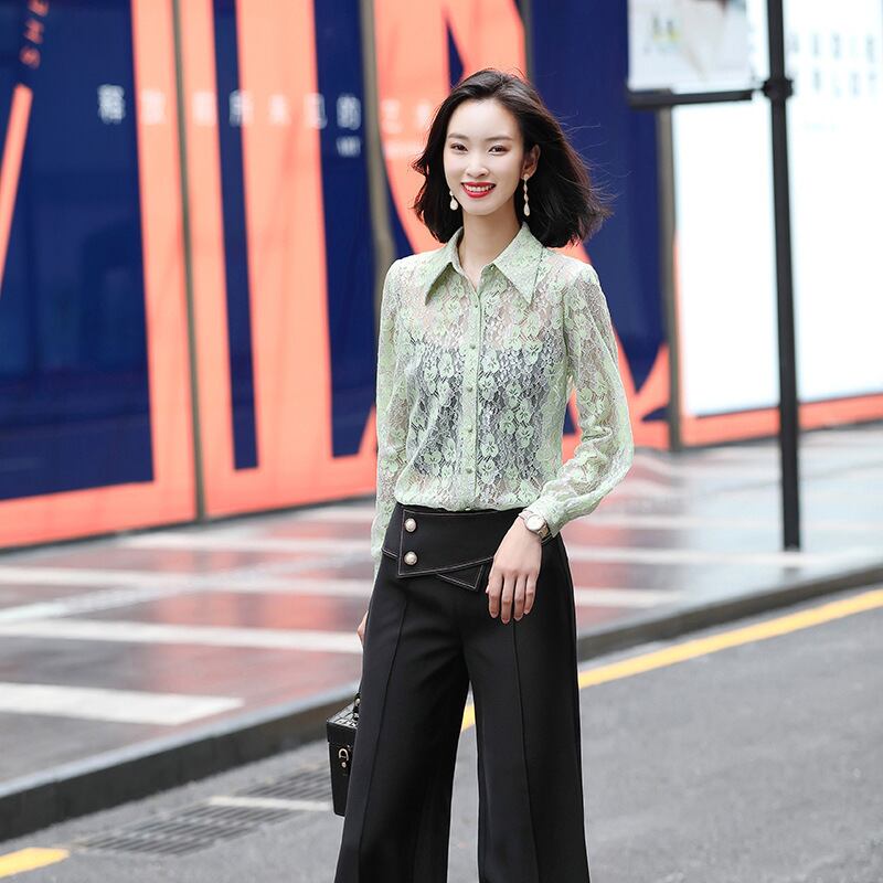 【新作】【送料無料】 空のレースシャツの本当のss2020年秋の新しいスタイルのデザインセンスニッチシャツラージサイズルーズで用途が広い-アリババ 大きめサイズ オータム 秋物 12b230556742698