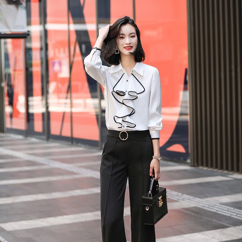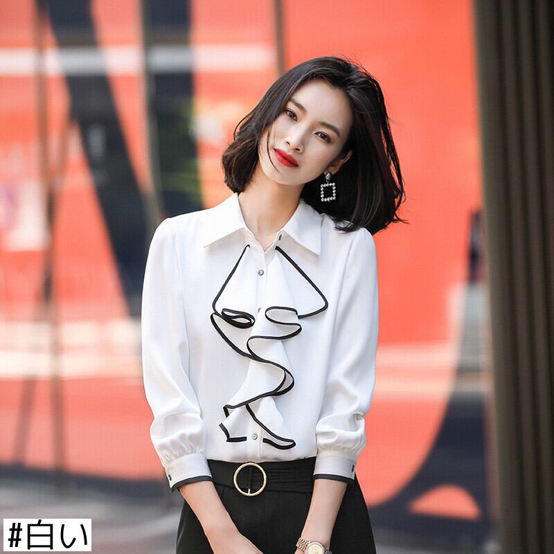 【新作】【送料無料】 本物の気質長袖2020年秋ニューシャツレディースアセテートサテンプロフェッショナルウェアラージサイズルーズシャツオールマッチ-アリババ ロング 大きめサイズ オータム 秋物 12b241305622410