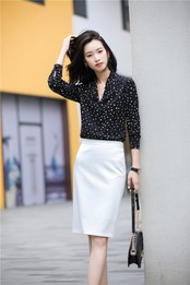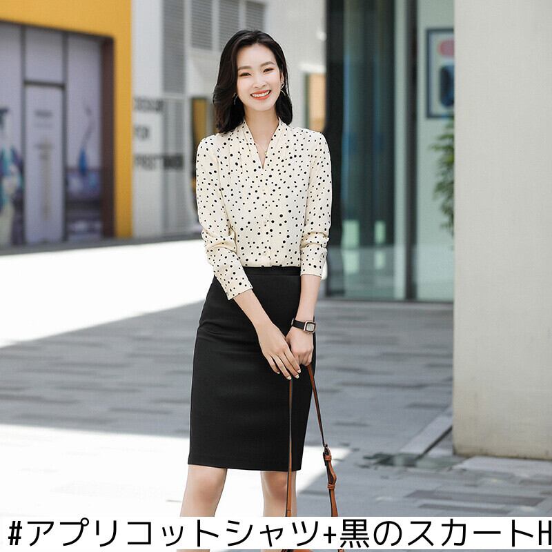 色:黒,アプリコット,黒のシャツ+白のスカートH1067,アプリコットシャツ+黒のスカートH1067