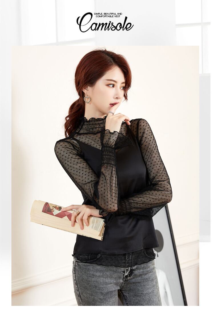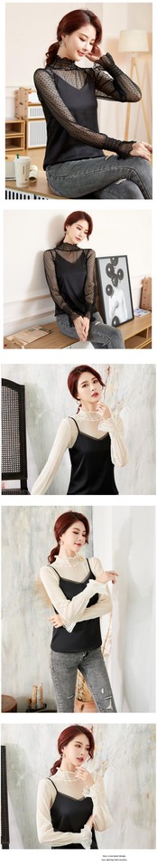 【新作】【送料無料】 Real s 2020新バージョンのスイートネットレッドレースボトミングシャツ、長袖シャツと秋のネットヤーントップの女性-アリババ ロング 大人ガーリー スウィート キュート カジュアル オータム 秋物 12b21079592258