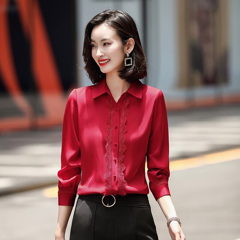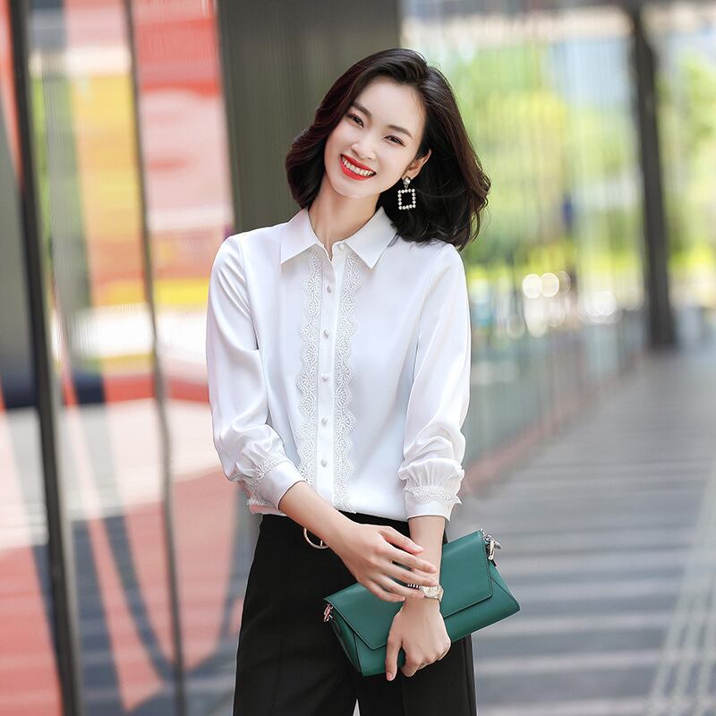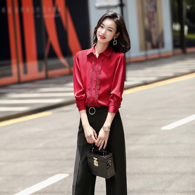 【新作】【送料無料】 リアルSブルーシャツレディースアセテートサテン秋長袖ブラウス2020新作シャツデザインセンスニッチ-アリババ ロング オータム 秋物 12b291635647772