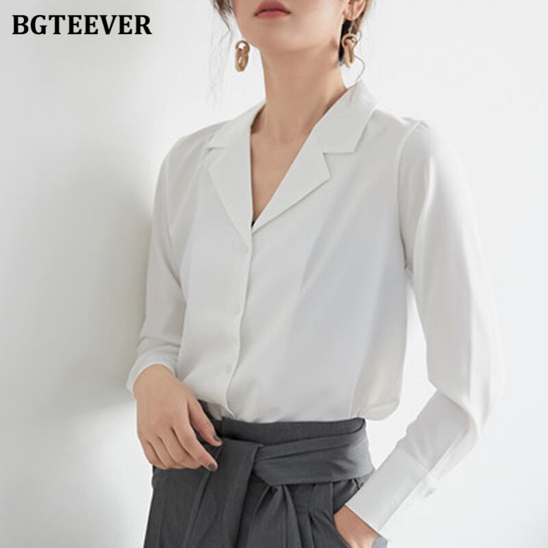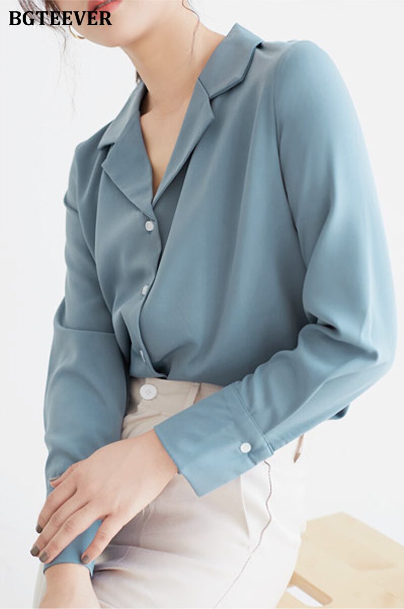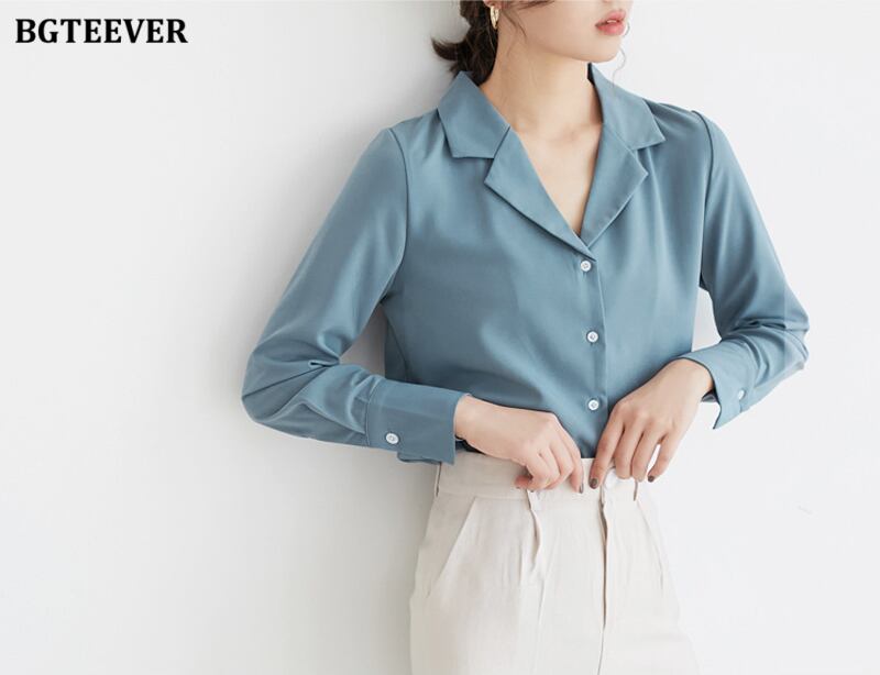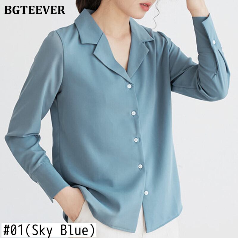 【新作】【送料無料】 BGTEEVERシックなノッチカラーソリッドブラウストップス長袖スリムシャツ2021春OL ロング スプリング 春物 ソリッドカラー 12b165016233628