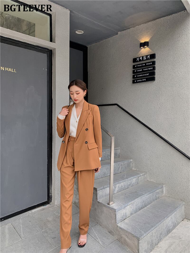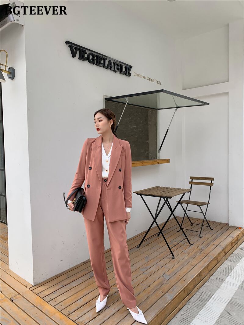 【新作】【送料無料】 BGTEEVERブレザースーツノッチカラーダブルブレストブレザージャケット&ロングパンツレディースパンツスーツ2点セット 12b182222579120