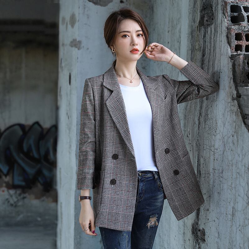【新作】【送料無料】 Real s2020新気質プロスーツジャケットバージョンラージサイズチェック柄スモールスーツジャケット女性カジュアルオールマッチ-アリババ 大きめサイズ 12b288188582250