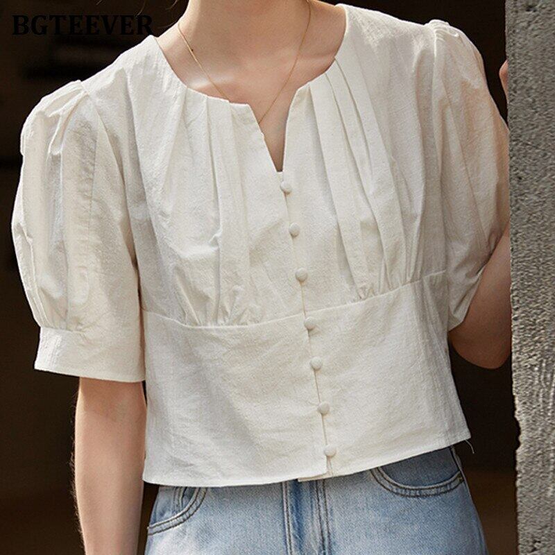 【新作】【送料無料】 BGTEEVERサマートップスOネックシングルブレスト女性ブラウス半袖シャツSolides 2020 ショート ハーフスリーブ 夏物 ソリッドカラー 12b173866449989