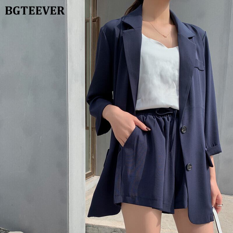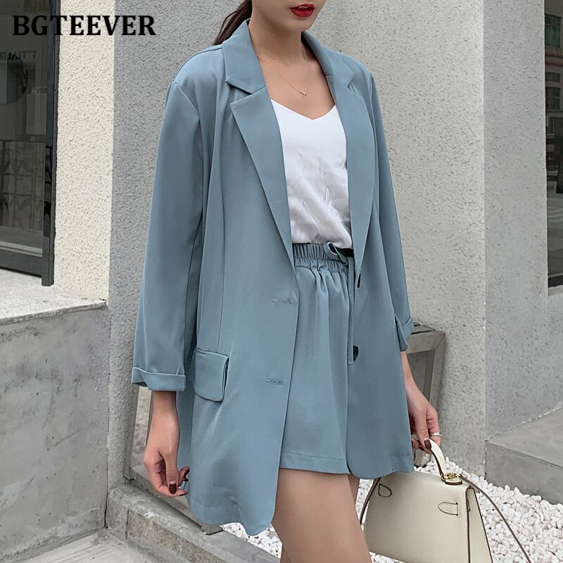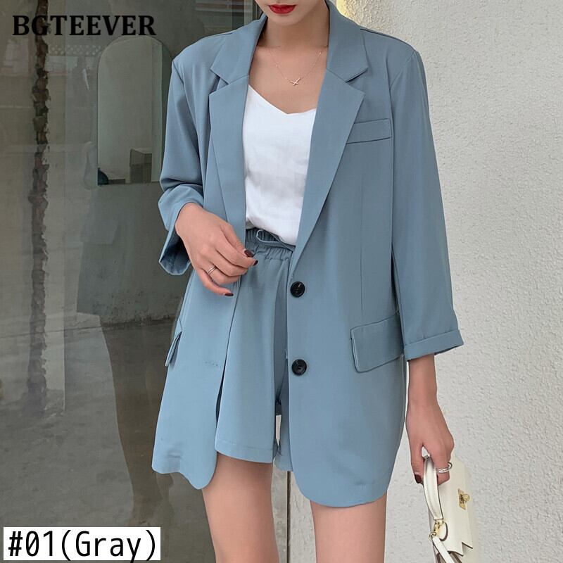 【新作】【送料無料】 BGTEEVERサマー2ピースセットレディースシングルブレザー&エラスティックウエストショーツショートパンツスーツ2020 伸縮 夏物 ブルマー 12b149477432584