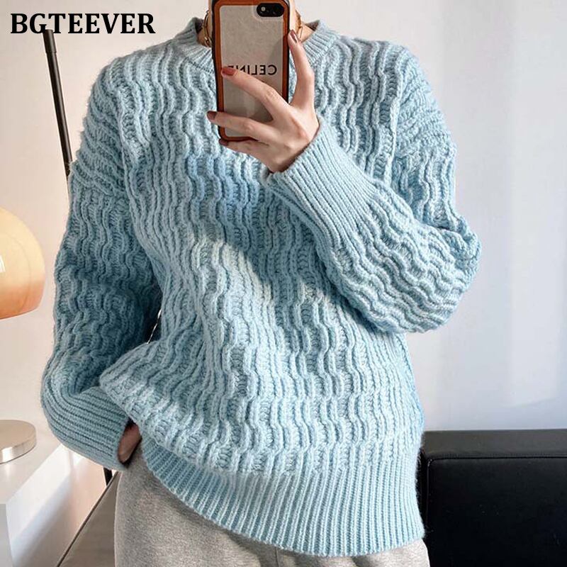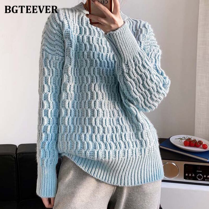 【新作】【送料無料】 BGTEEVEROネックシックな女性のニットセーター2020冬のルーズソリッドジャンパーニットトップス暖かいプルオーバー ウィンター 冬物 ソリッドカラー 12b16094943716