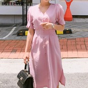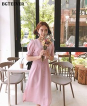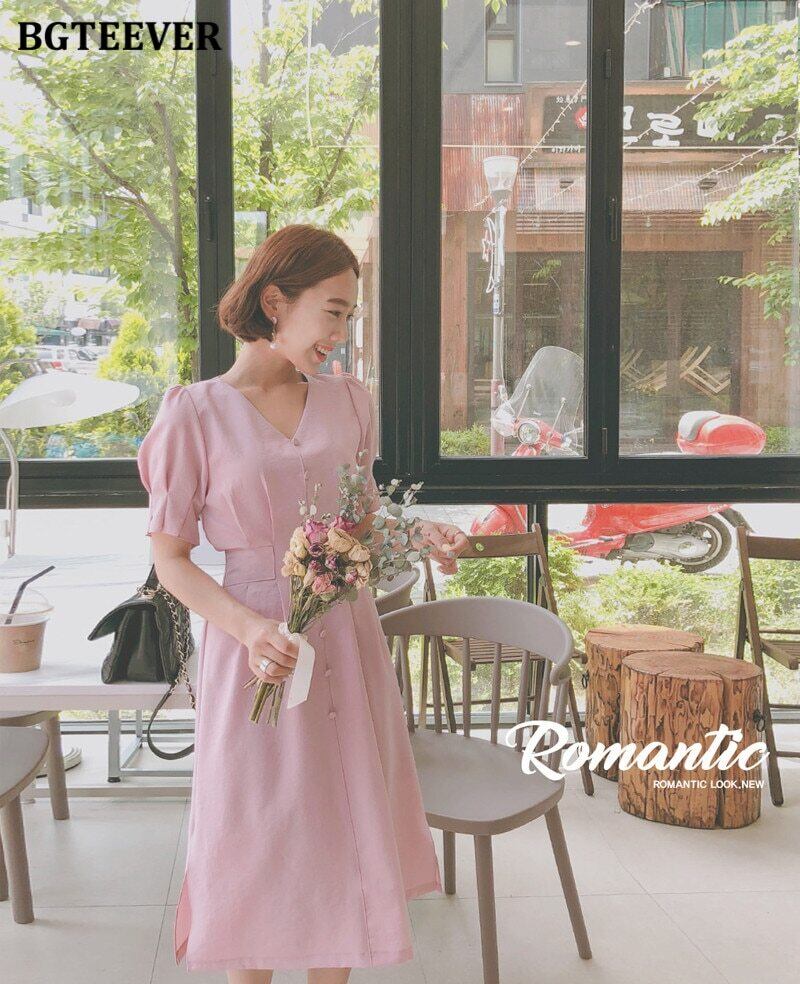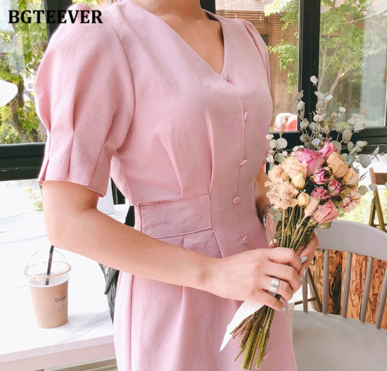 【新作】【送料無料】 BGTEEVERスウィートVネックシングルブレストレディースドレス半袖スリムウエストドレスAライン ショート ハーフスリーブ 大人ガーリー キュート カジュアル 12b191505816531