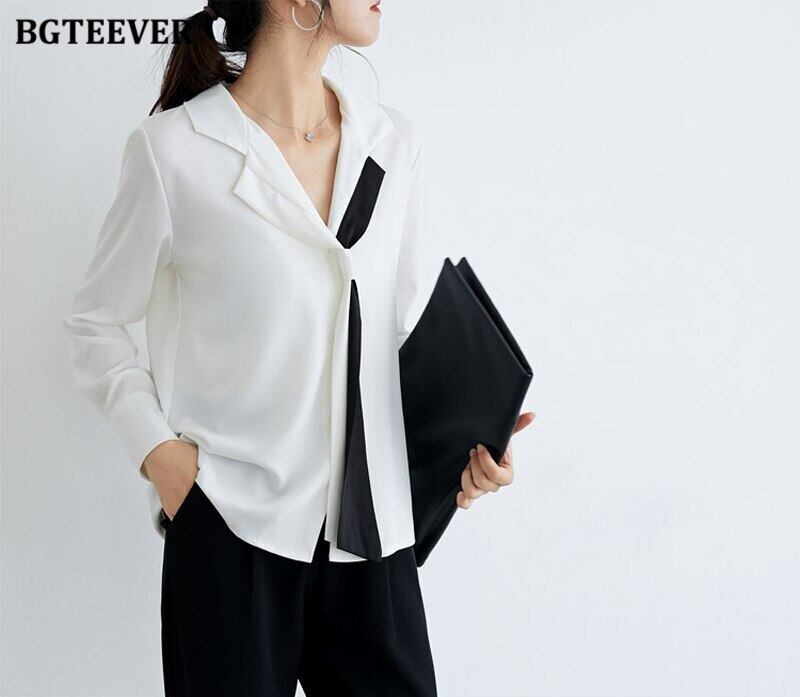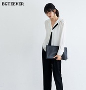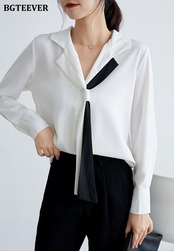 【新作】【送料無料】 BGTEEVERオフィスノッチ付きシフォンシャツルーズブラウスヒットカラーネクタイレディースホワイトシャツトップス2020夏 サマー 夏物 会社 学校 通勤や通学にも 12b113086309602
