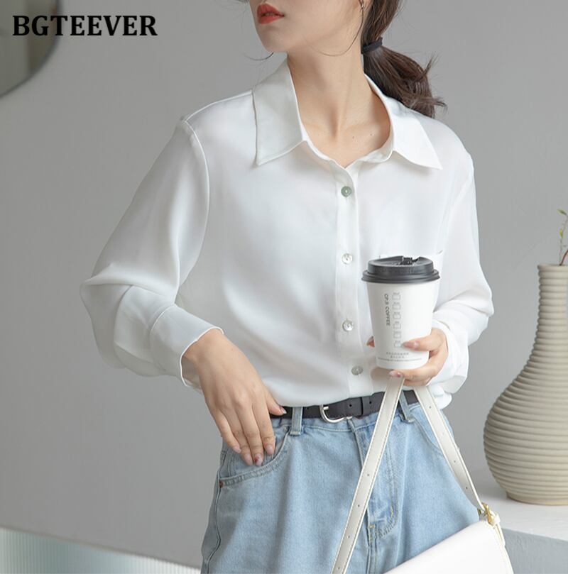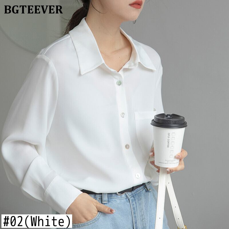 【新作】【送料無料】 ルーズシングルブレストワンポケットホワイトシャツレディースソリッドブラウススプリングトップス 春物 ソリッドカラー 12b161159303970