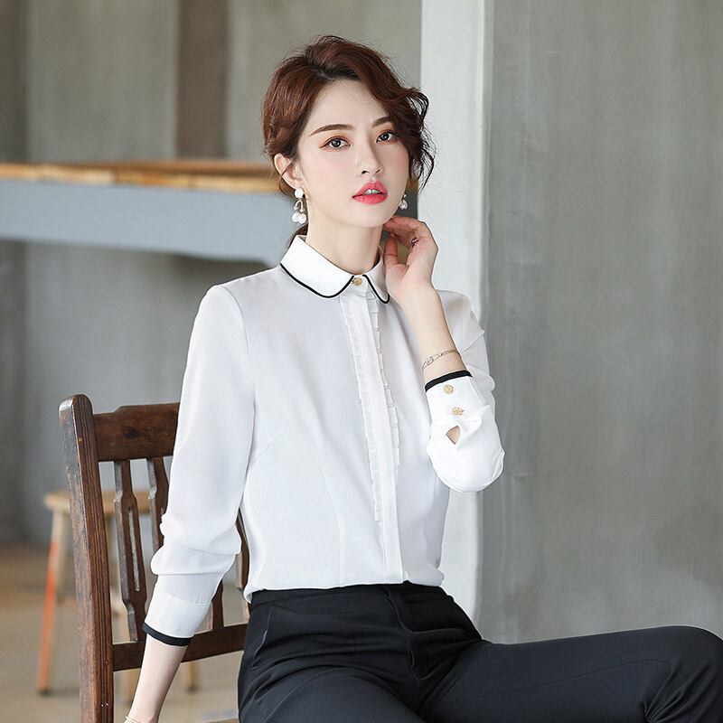 【新作】【送料無料】 本物の気質プロ長袖ラペルシャツ女性春秋カジュアルオールマッチプラスサイズルーズシャツ2020new-Alibaba ロング 大きめサイズ スプリング 春物 オータム 秋物 12b269025992340