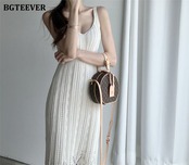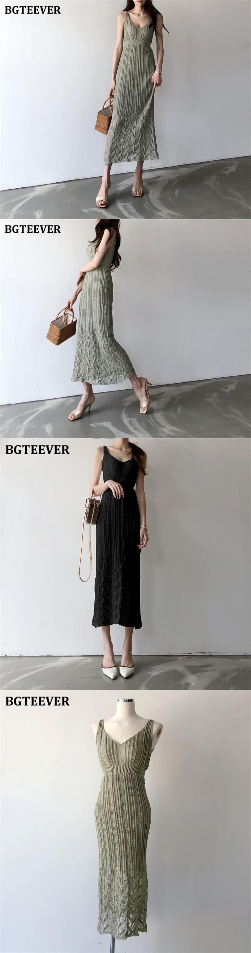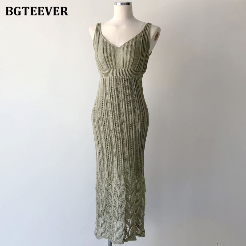 【新作】【送料無料】 BGTEEVERVネックスパゲッティストラップノースリーブボディコンドレスレディースサマーニットドレス2020中空アウトミディヴェスティドス 夏物 12b178565379237