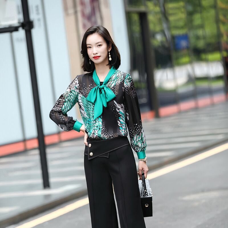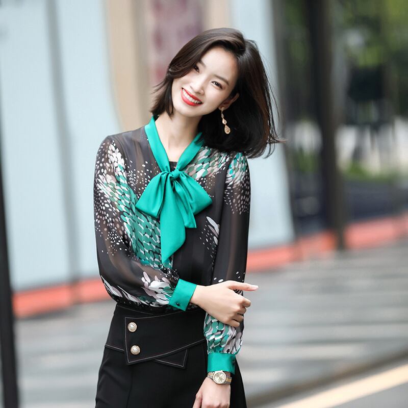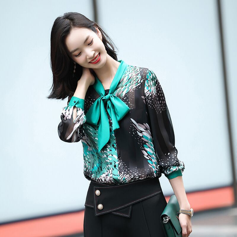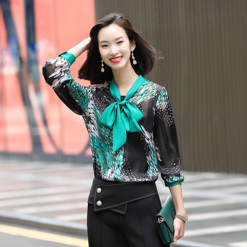 【新作】【送料無料】 Real s2020春秋新作アセティックサテンシャツレディースバージョンルーズプラスサイズブラウスプリント長袖シャツ-Alibaba ロング 大きめサイズ スプリング 春物 オータム 秋物 12b231511537349