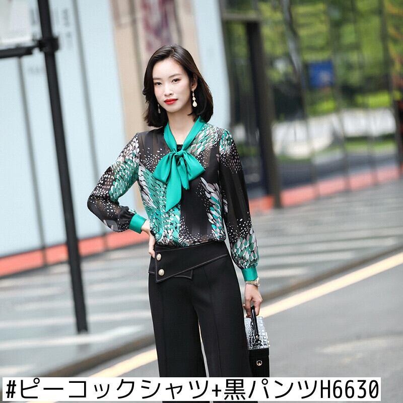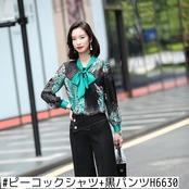 色:孔雀の花,ピーコックシャツ+黒パンツH6630