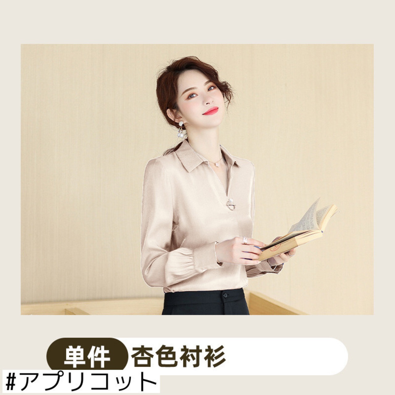 【新作】【送料無料】 本物の秋の気質プロのマルウェアプラスサイズの長袖シャツ女性2020新しいファッションと用途の広いデザインシャツ-アリババ ロング 大きめサイズ オータム 秋物 12b230382376453