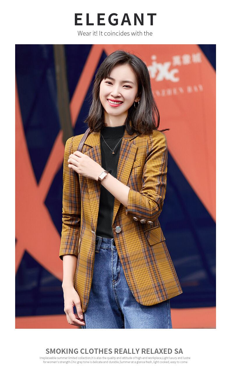 【新作】【送料無料】 Real s netredカジュアルオールマッチチェック柄スモールスーツジャケットレディース2020新春秋スタイルスーツジャケット-アリババ レッド スプリング 春物 オータム 秋物 12b256715807534