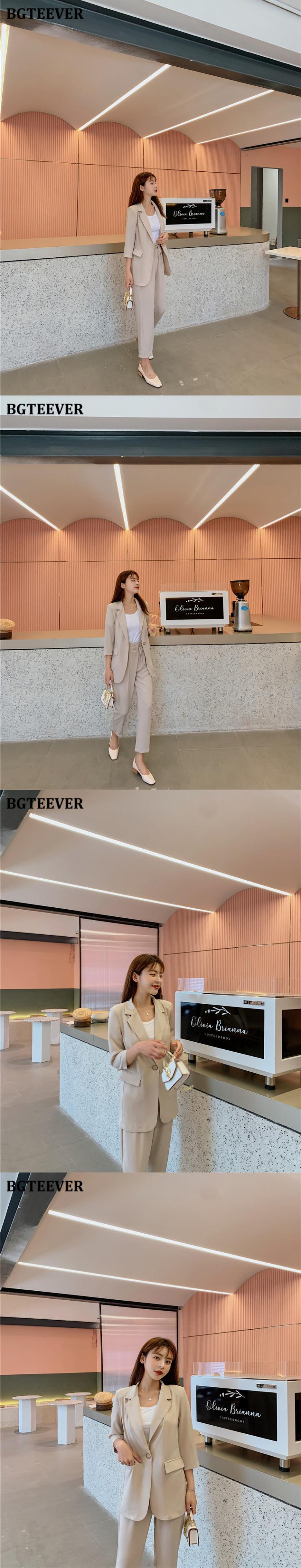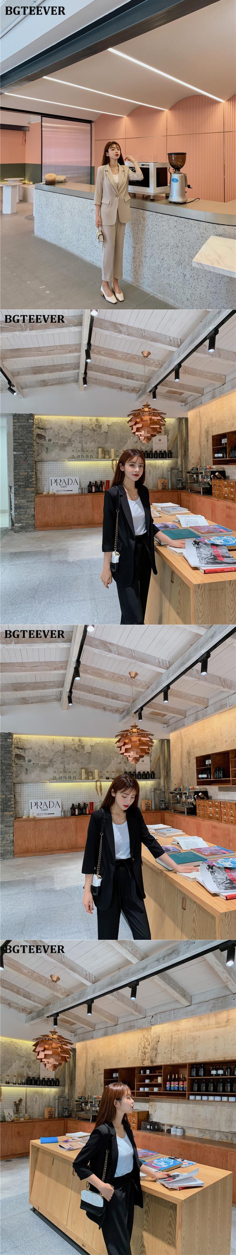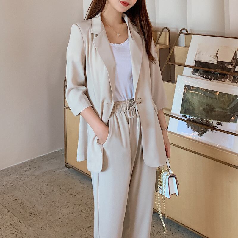 【新作】【送料無料】 BGTEEVERサマーウィメンズ2点セットシングルボタンブレザージャケット&エラスティックウエストパンツブレザーパンツスーツ2020 伸縮 夏物 12b125965947470