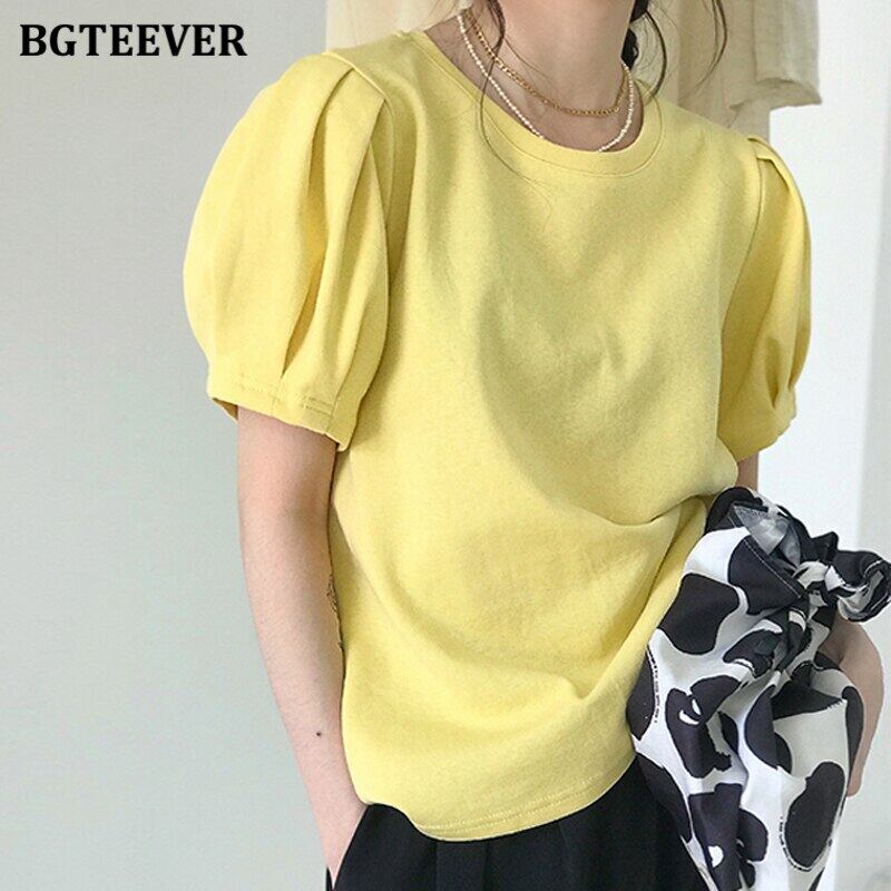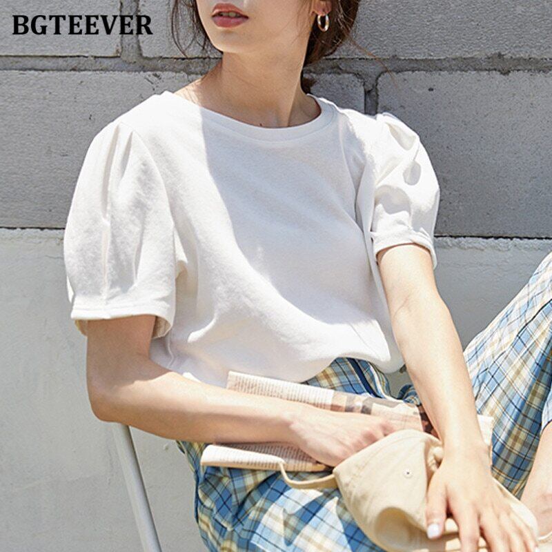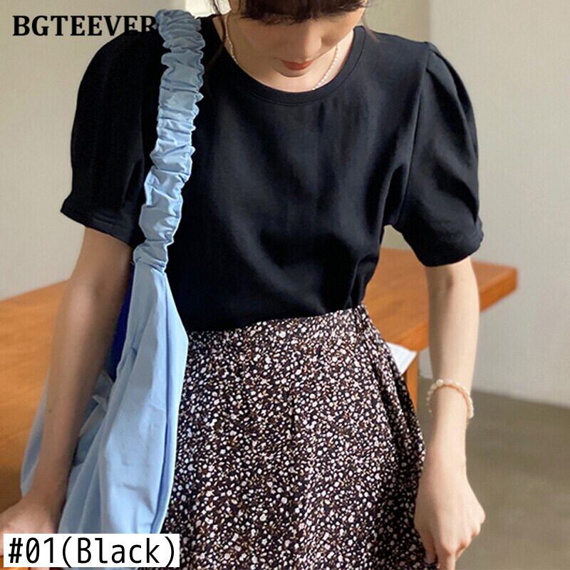 【新作】【送料無料】 BGTEEVERホワイトパフスリーブレディースTシャツ2020夏OネックコットンTシャツトップスTシャツルーズシャツトップス サマー 夏物 12b15803361639
