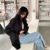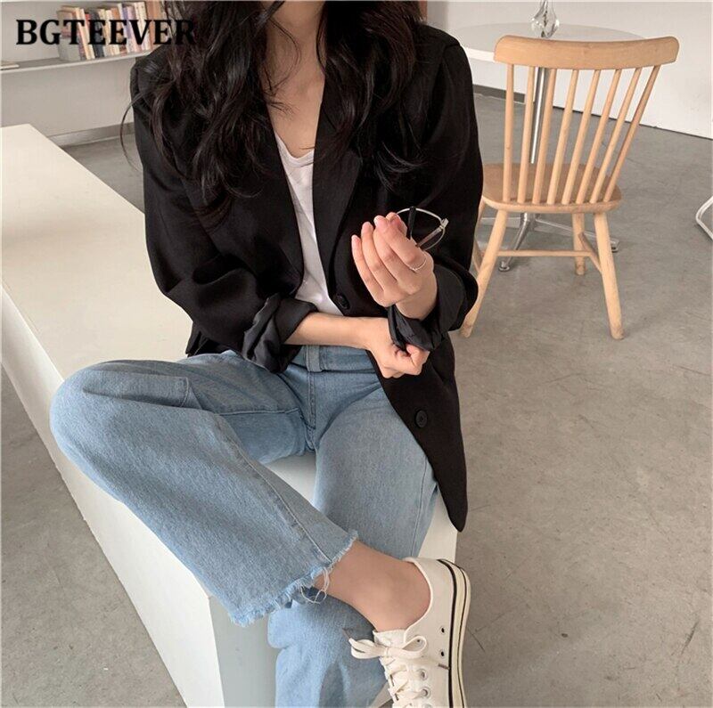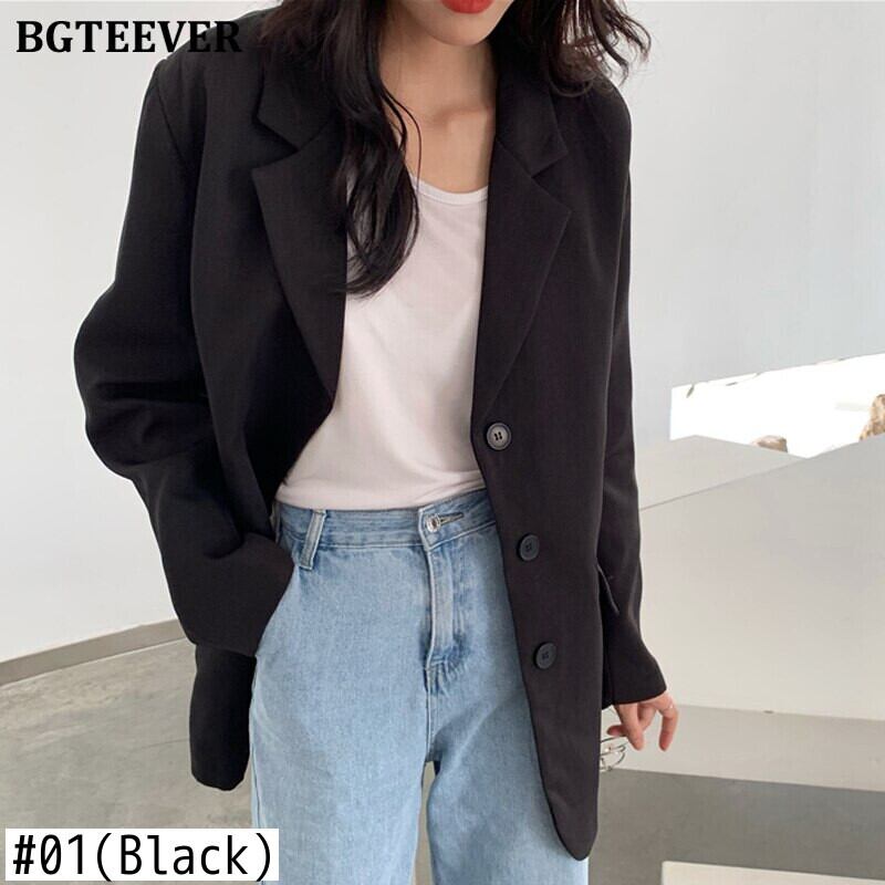 【新作】【送料無料】 BGTEEVERルーズシングルブレストレディースブレザージャケットノッチカラー長袖ベーシックブラックスーツアウター2020 ロング 12b185232743544
