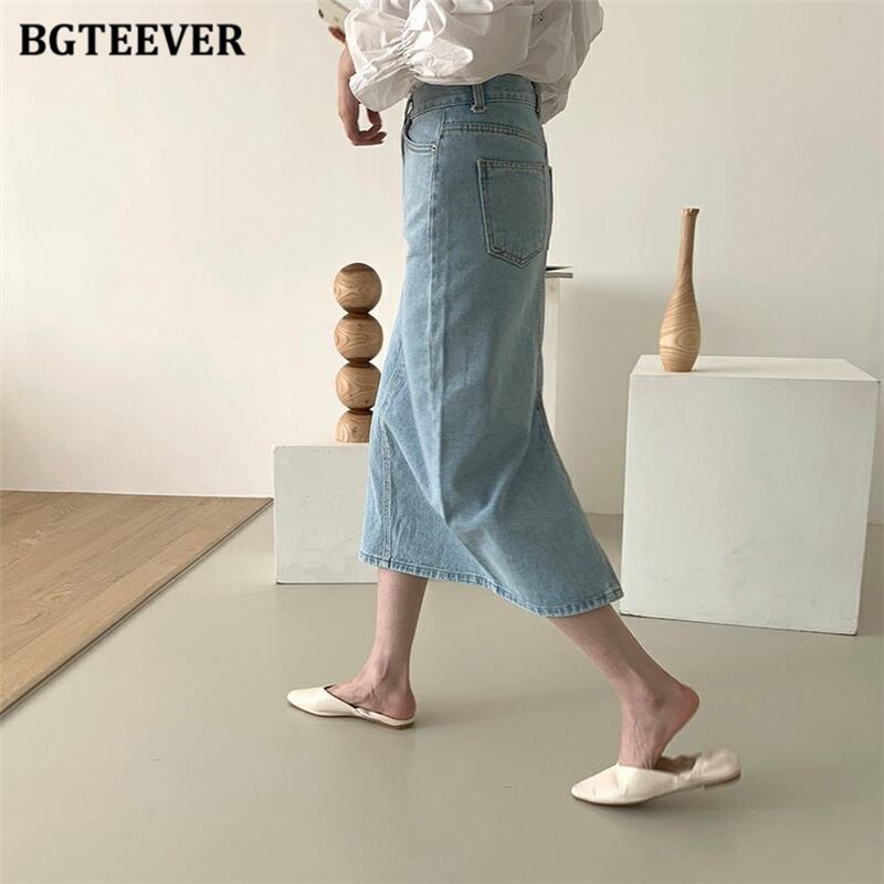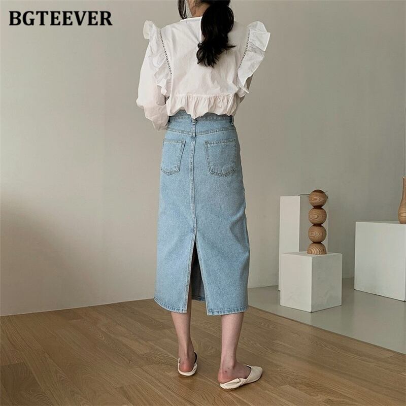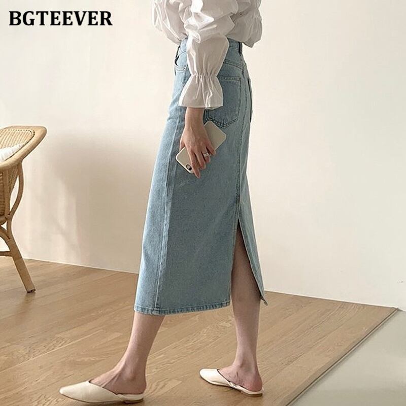 【新作】【送料無料】 BGTEEVERサマーシックビハインドスプリットデニムスカートウエストストレートジーンズスカートレディース2020ストリートウェア 夏物 12b191906580834