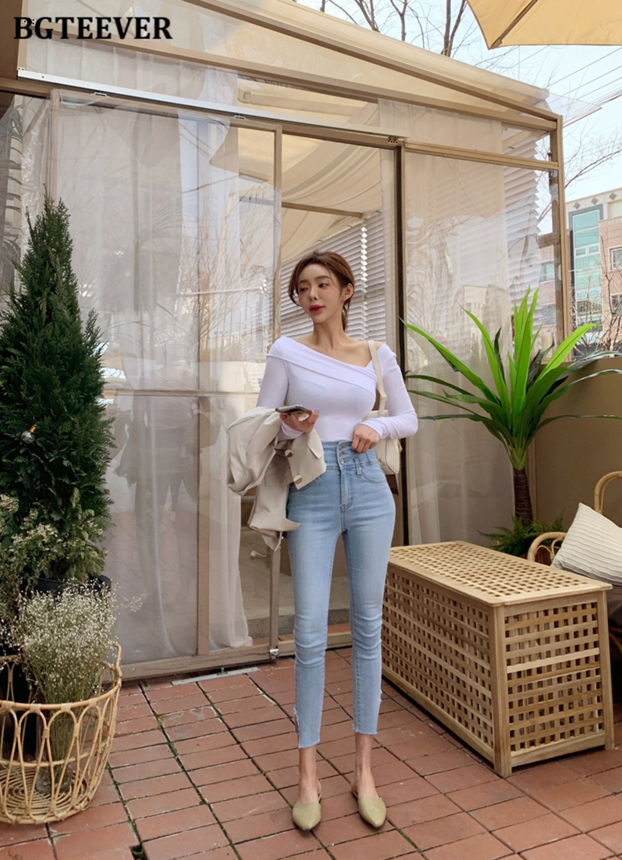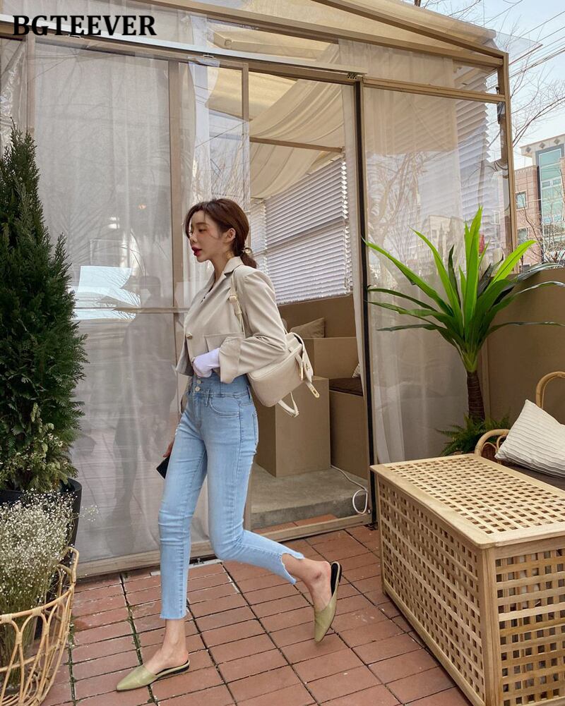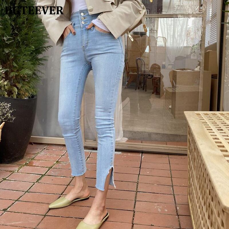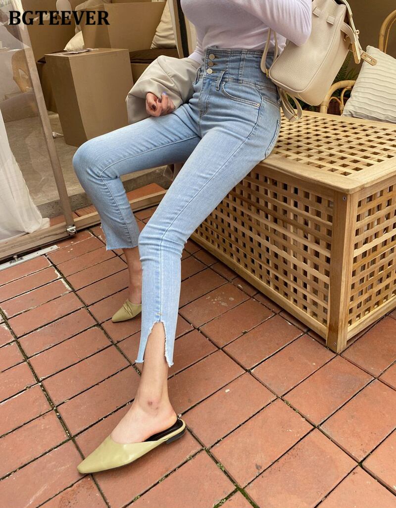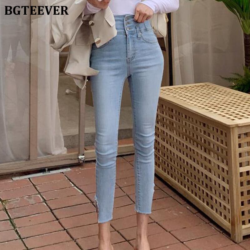 【新作】【送料無料】 BGTEEVERストリートウェアスキニージーンズ2020サマーウエストペンシルジーンズレディースストレッチリップドデニムパンツファム 夏物 フェミニン 12b147427723113