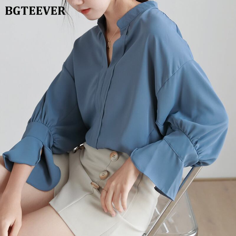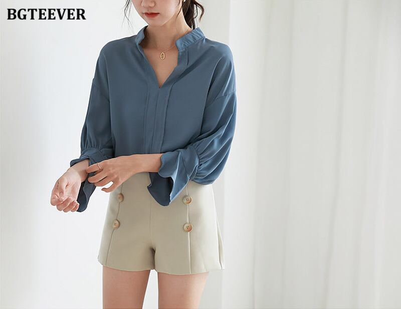 【新作】【送料無料】 BGTEEVERVネックフレアスリーブレディースシャツオフィスウェアルーズトップスルースブラウス2020夏 サマー 夏物 会社 学校 通勤や通学にも 12b134760499805