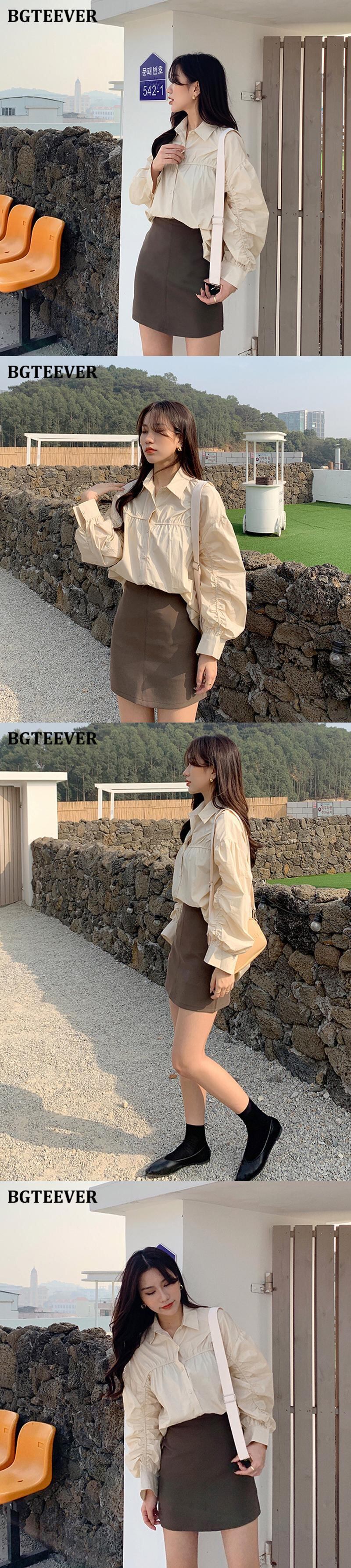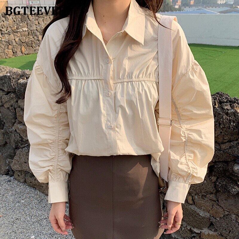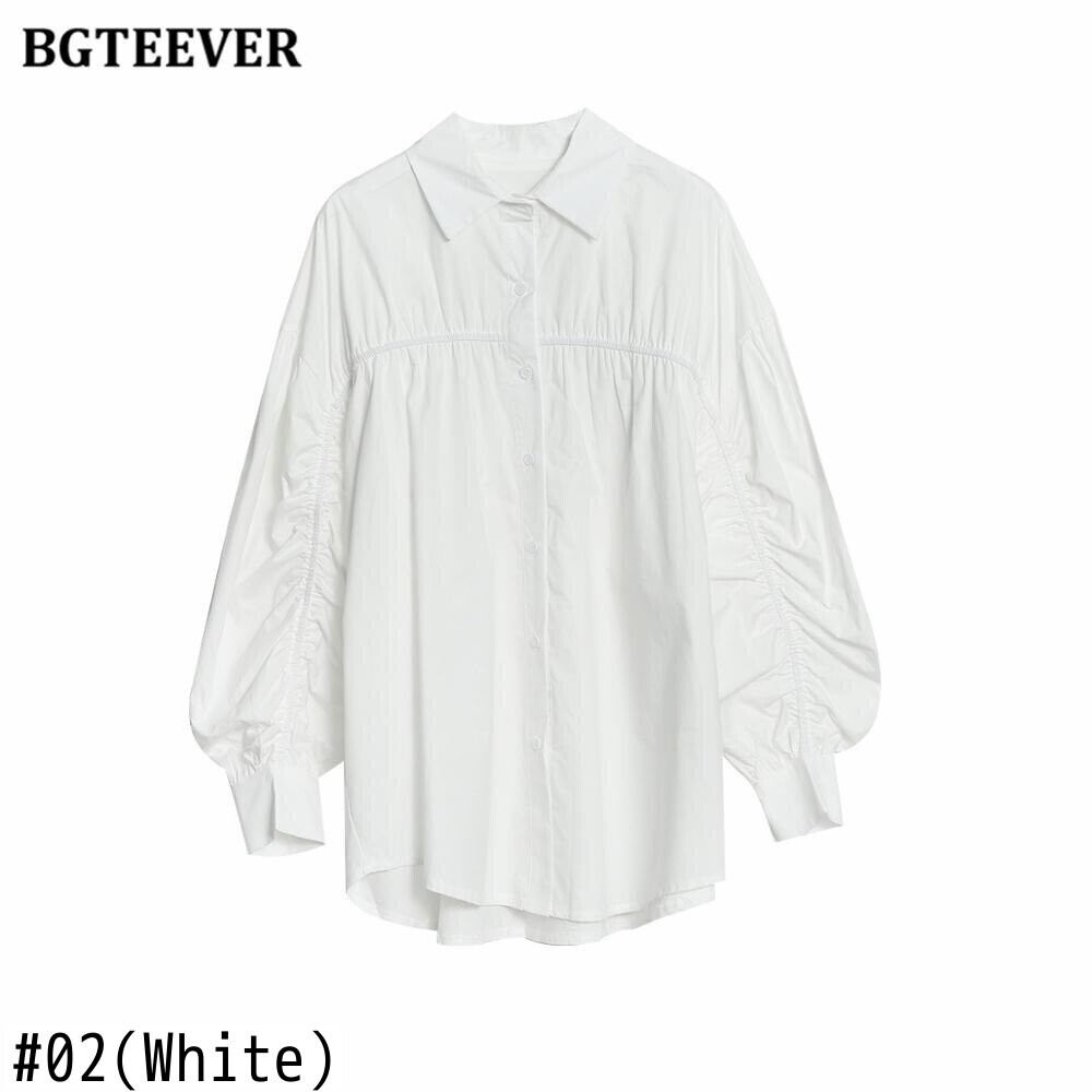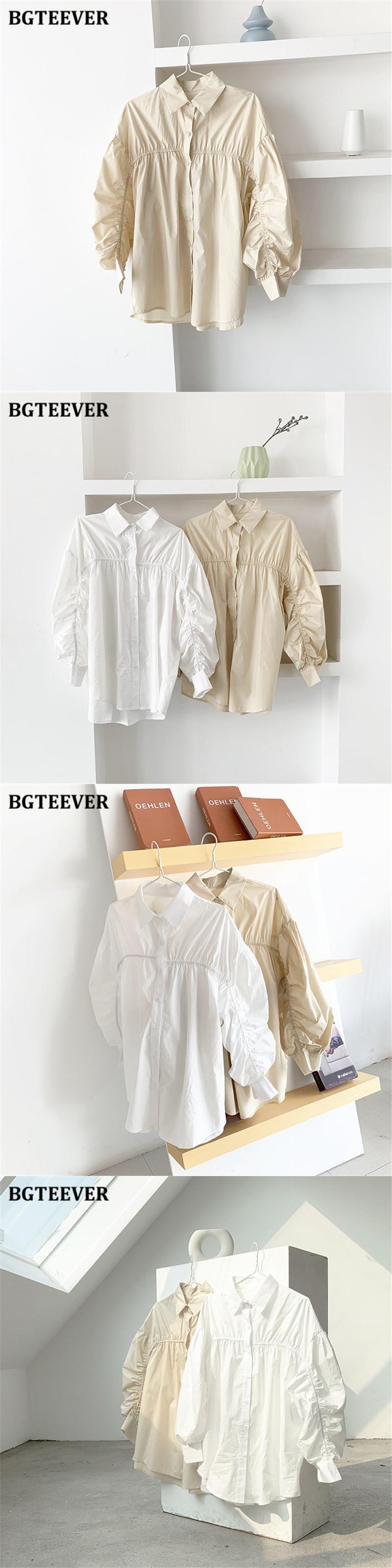 【新作】【送料無料】 BGTEEVERターンダウンカラーレディースホワイトシャツサマーシングルブレストパフスリーブブラウスシャツルーズトップス2020 夏物 12b177347817860