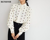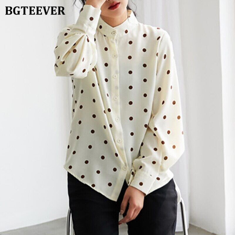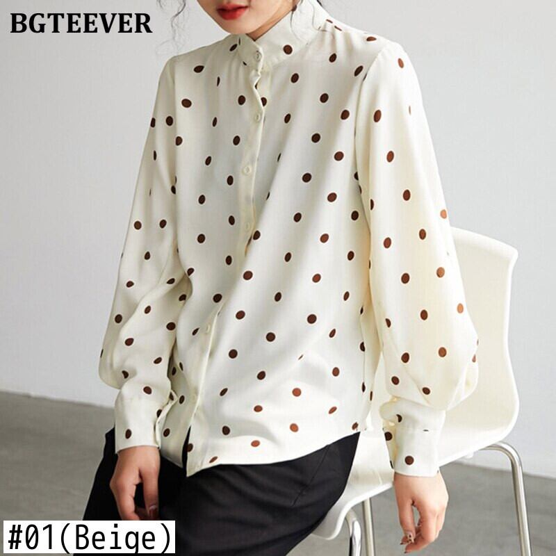 【新作】【送料無料】 BGTEEVERヴィンテージスタンドカラー水玉レディースシャツランタンスリーブレディースシャツトップスブラウス ビンテージ 12b17892128048