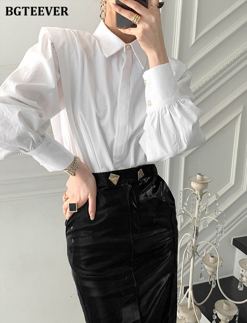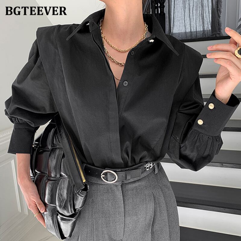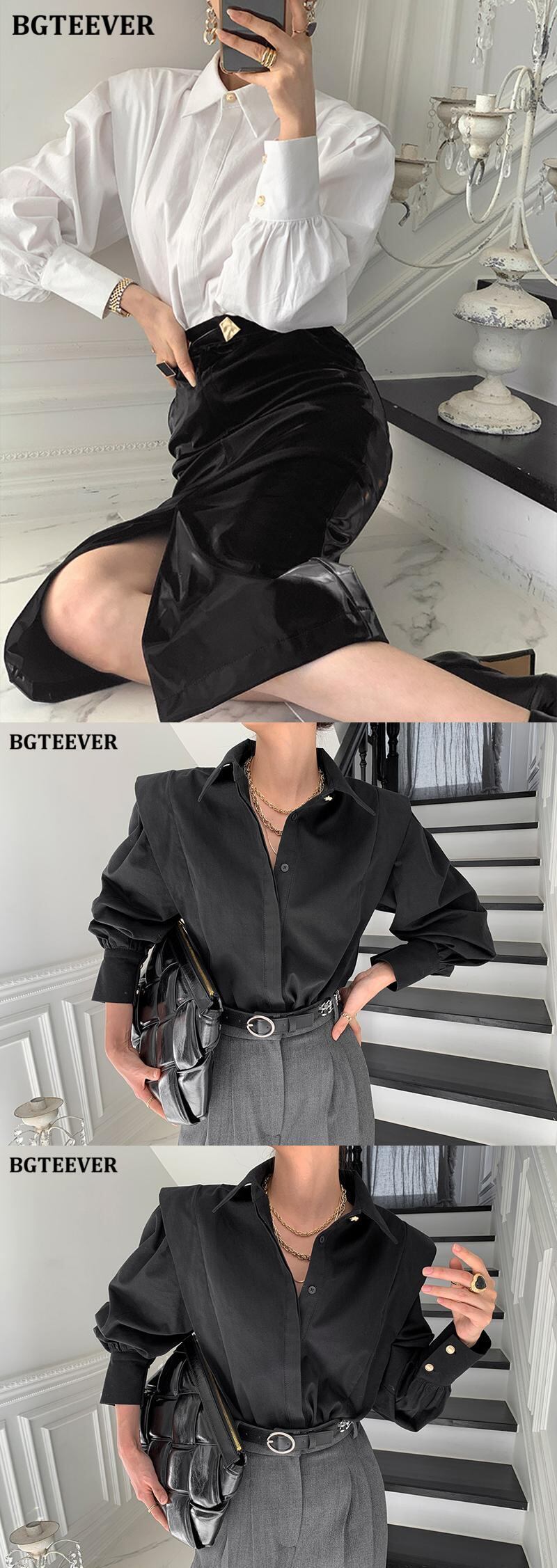 【新作】【送料無料】 BGTEEVERオフィスホワイトシャツブラウス2021年春シングルブレストルーズシャツ長袖作業服 ロング スプリング 春物 会社 学校 通勤や通学にも 12b127954717482