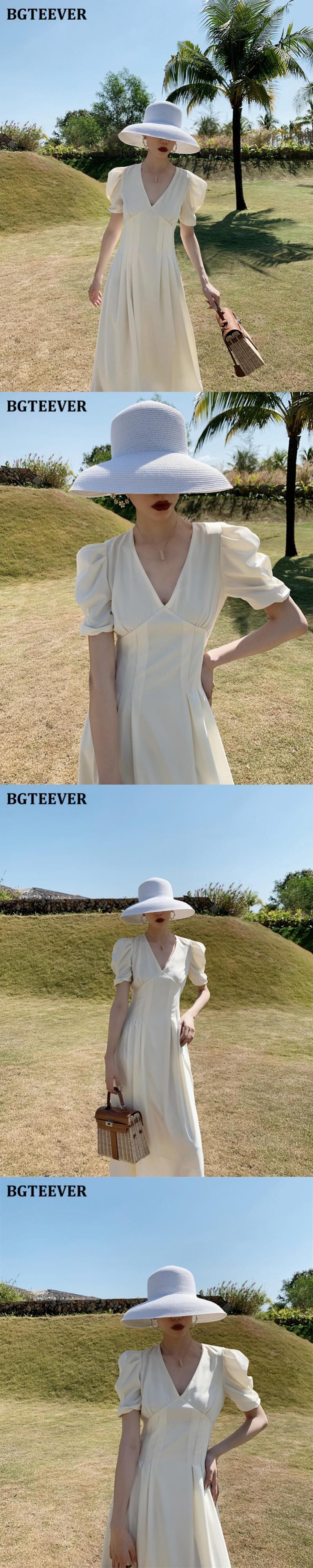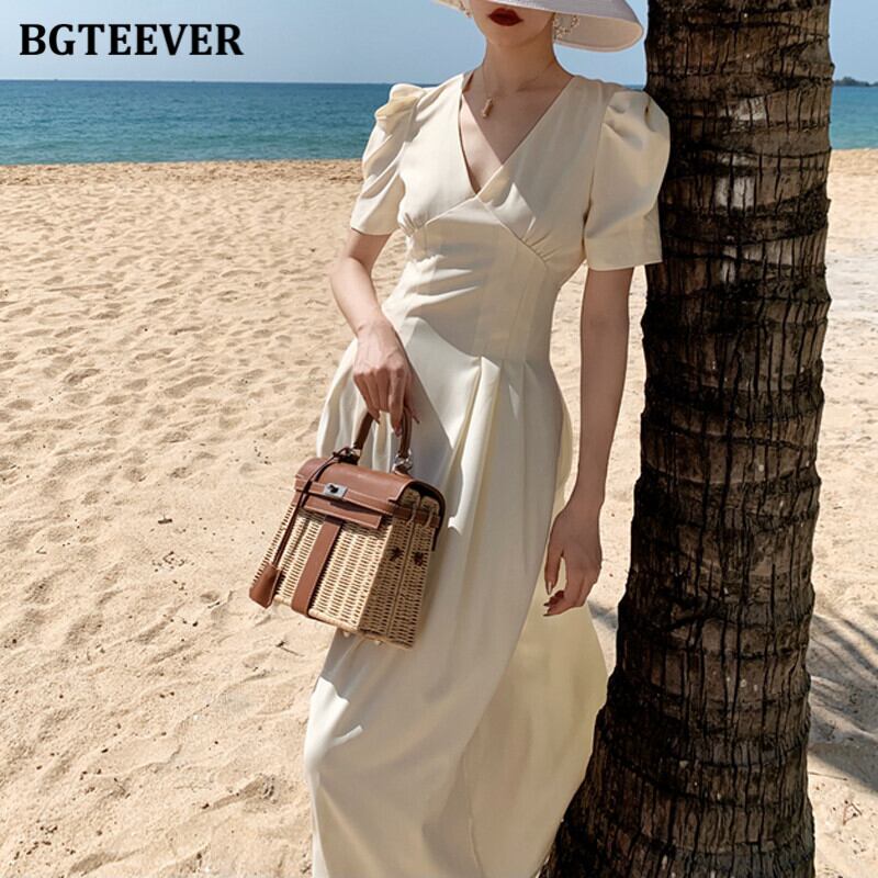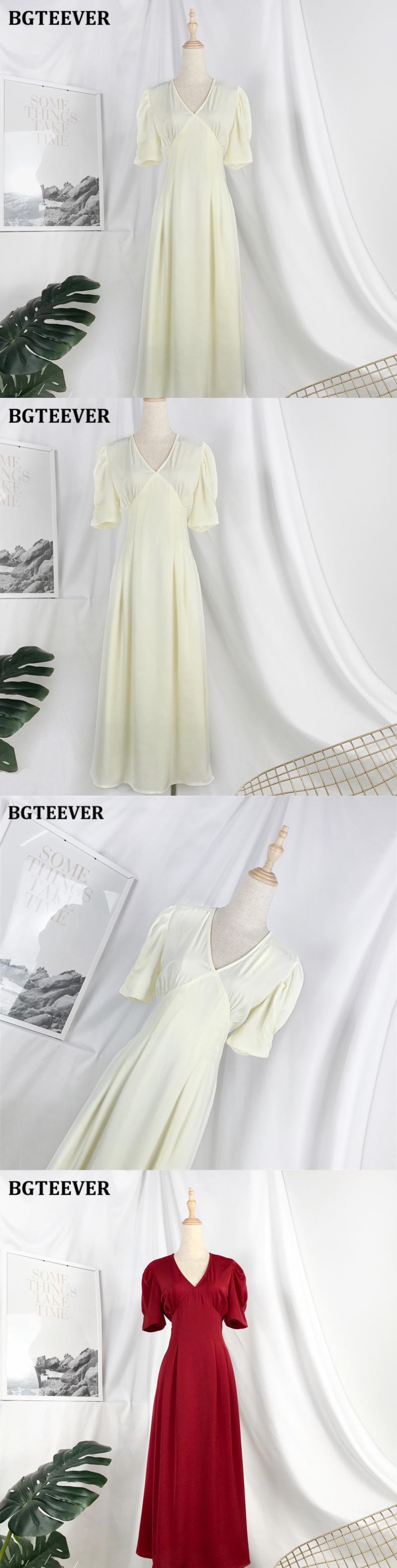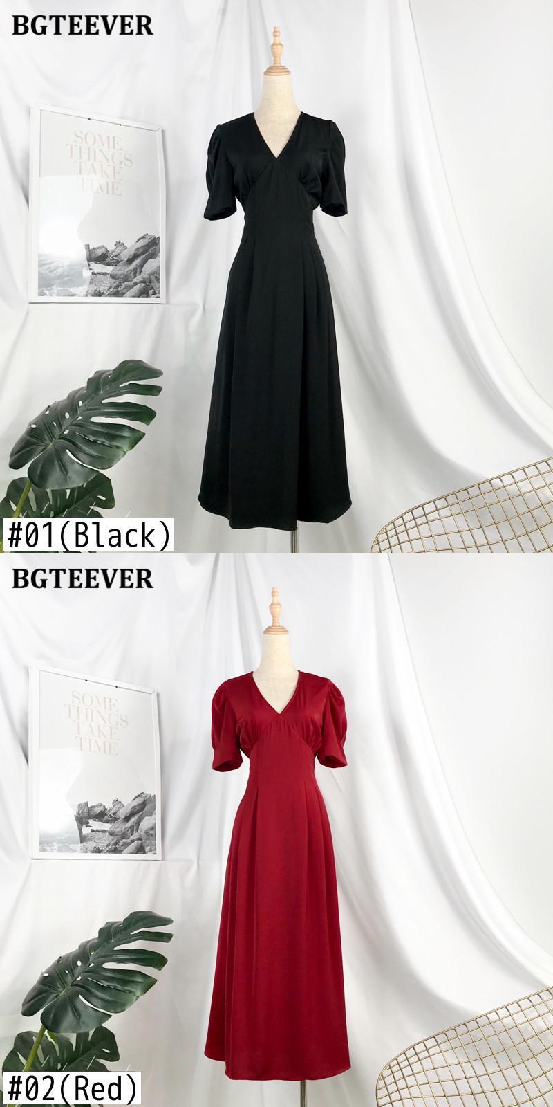 【新作】【送料無料】 BGTEEVERロマンティックスリムウエストAラインロングドレスレディースヴィンテージパフスリーブソリッドドレス2020パーティーVestidos ソリッドカラー ビンテージ 12b172127589797