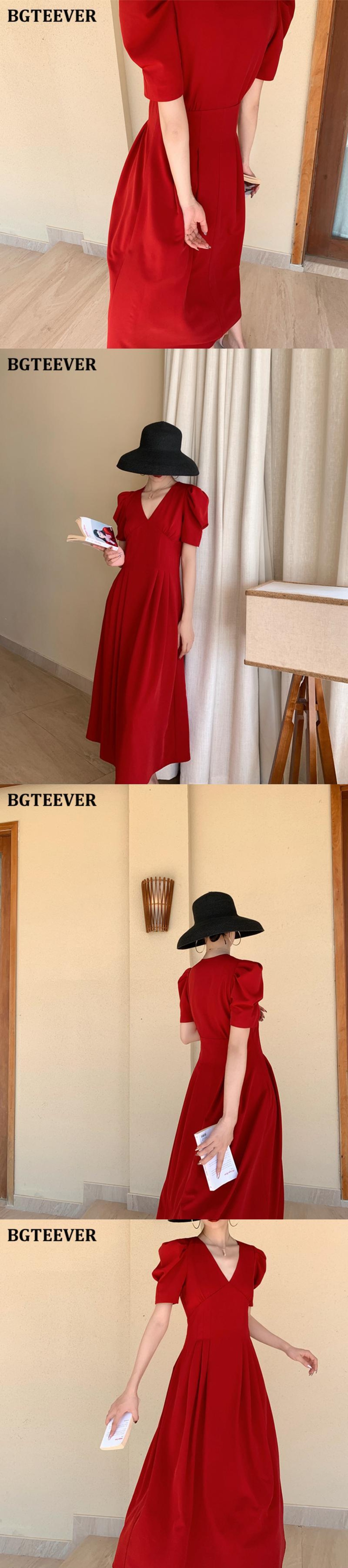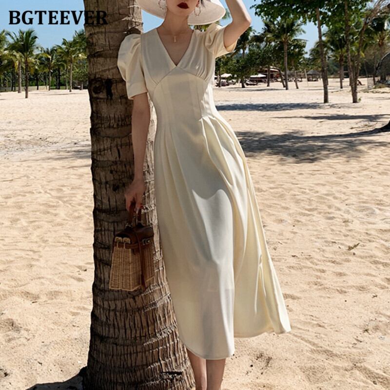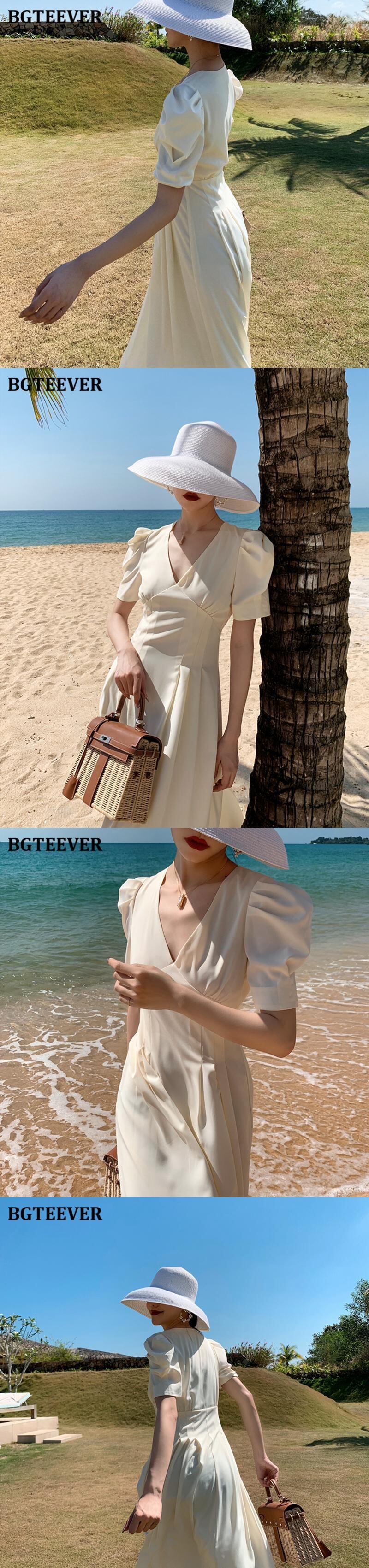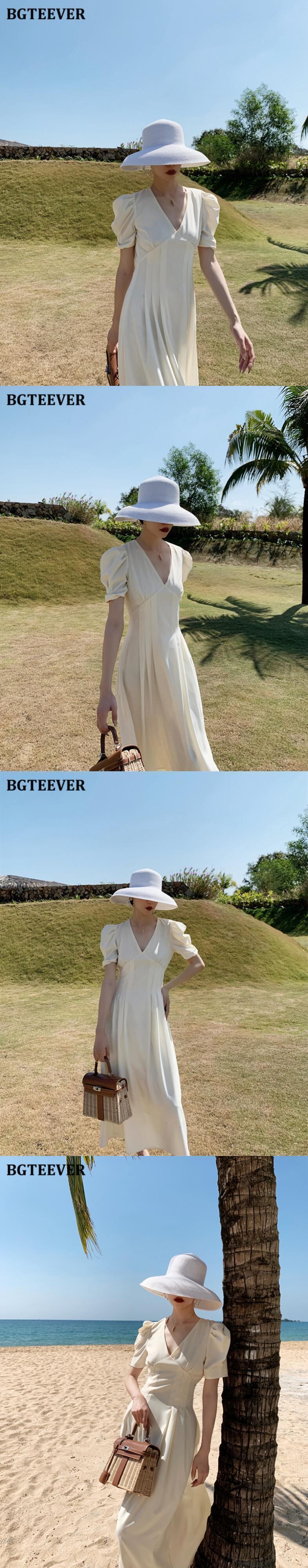 【新作】【送料無料】 BGTEEVERロマンティックスリムウエストAラインロングドレスレディースヴィンテージパフスリーブソリッドドレス2020パーティーVestidos ソリッドカラー ビンテージ 12b172127589797