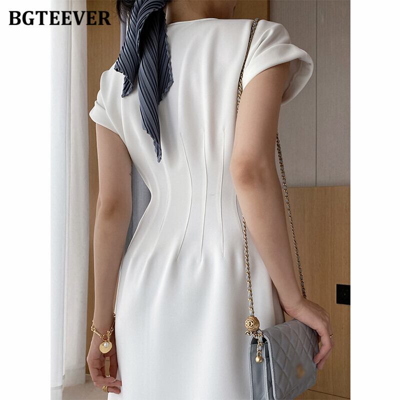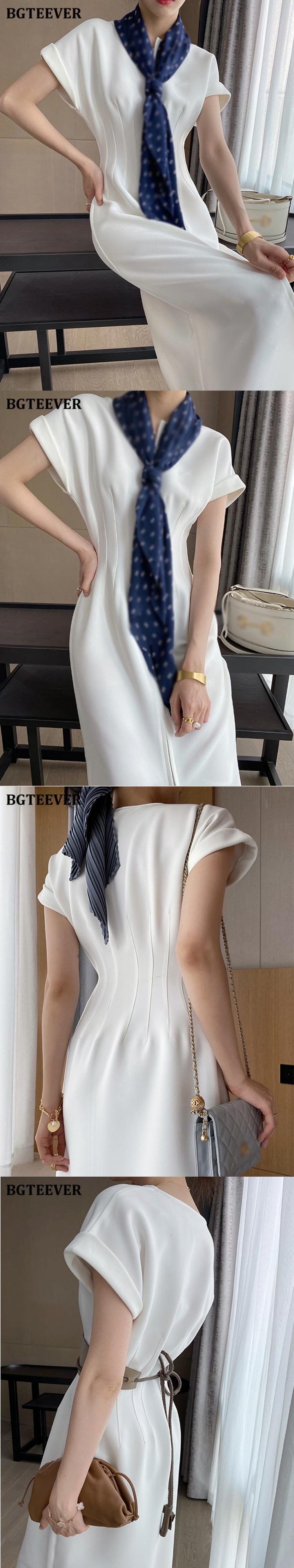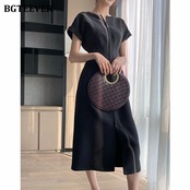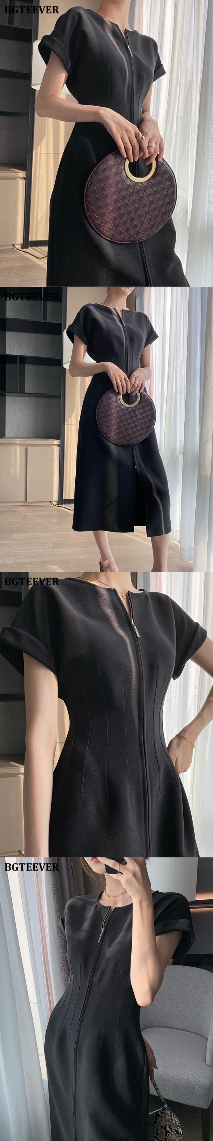 【新作】【送料無料】 BGTEEVEROネック半袖フロントジッパーミディドレスオフィススリムウエストスプリットレディースドレス2020ワークウェア ショート ハーフスリーブ 会社 学校 通勤や通学にも 12b142978764261