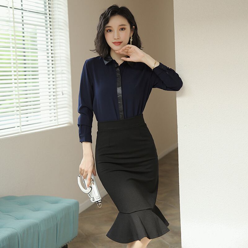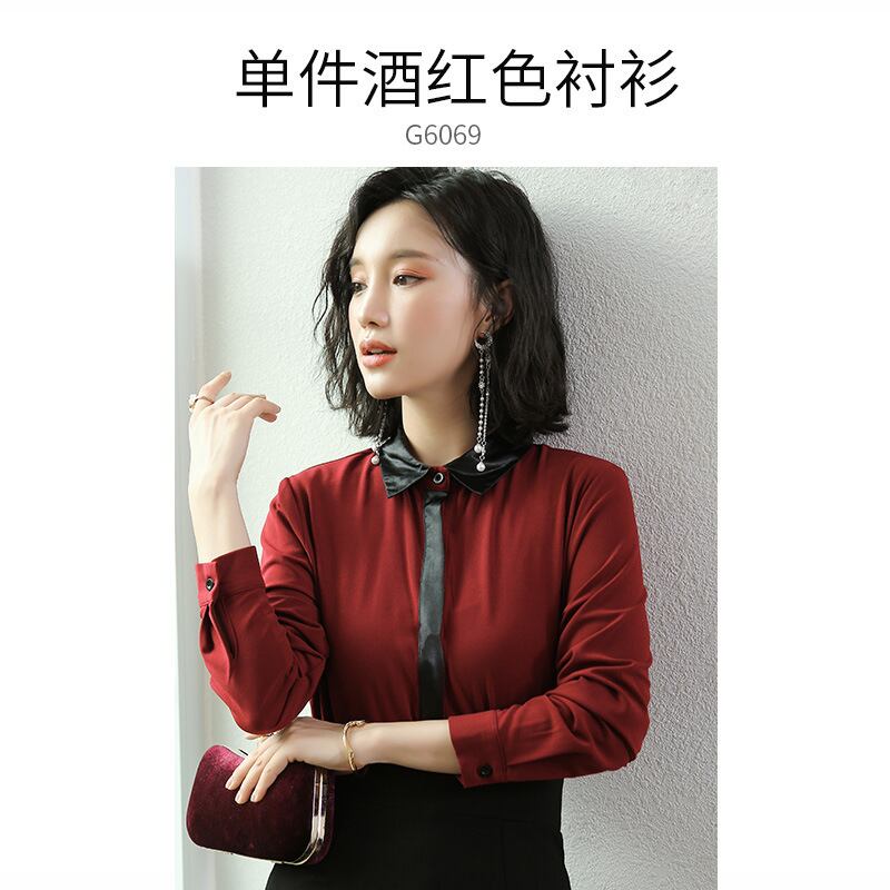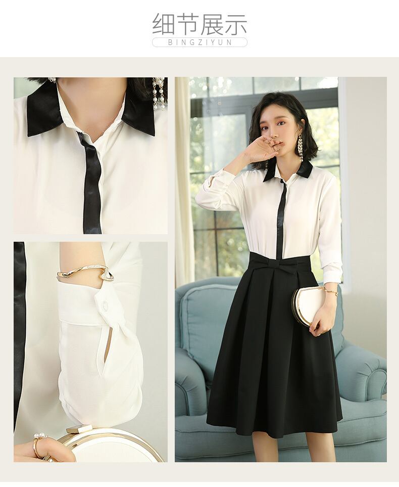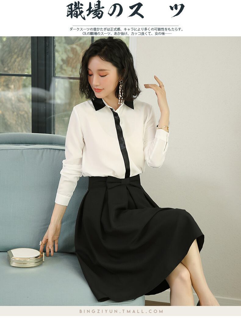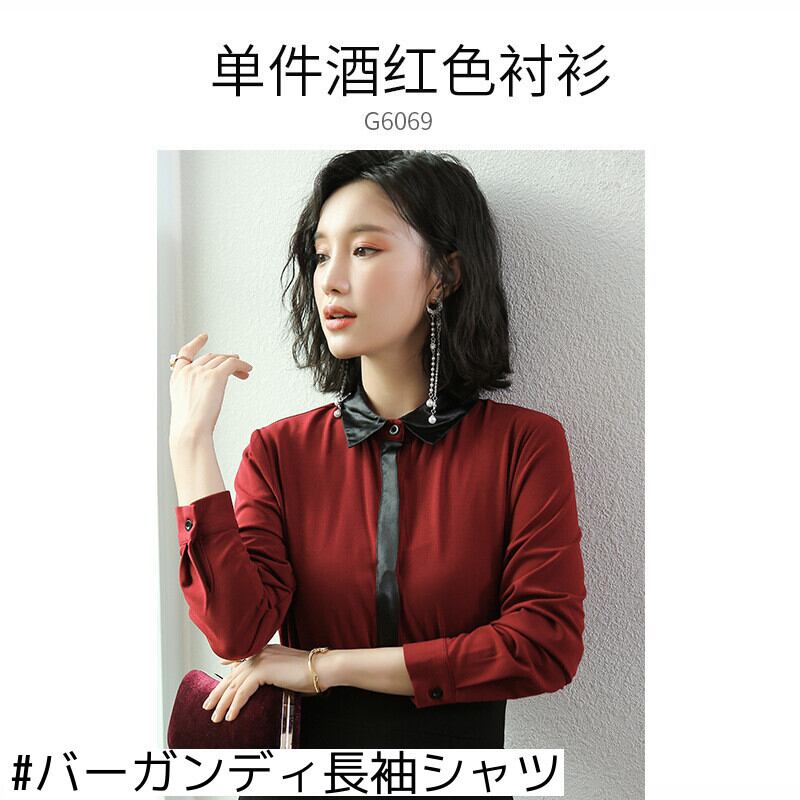 【新作】【送料無料】 2019初秋の女性の新しいスタイルのファッション気質シャツ女性OLラペルカラーマッチング長袖気質通勤シャツ-アリババ ロング オータム 秋物 12b385689259382