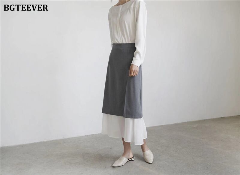 【新作】【送料無料】 BGTEEVERオフィスウェアウエストスプリットレディーススカートサマーパッチワークAラインミディスカート2020 夏物 会社 学校 通勤や通学にも 12b134488976893