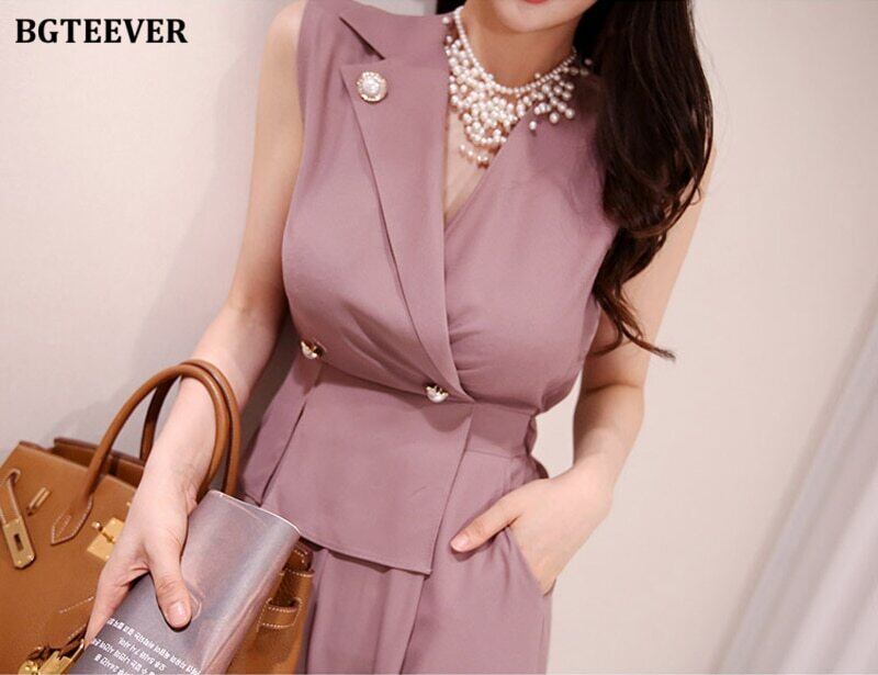 【新作】【送料無料】 BGTEEVERノースリーブジャンプスーツサマーノッチカラースリムウエストワイドレッグレディースオーバーオールプレイスーツロンパース 夏物 ワイドパンツ 12b157631310901