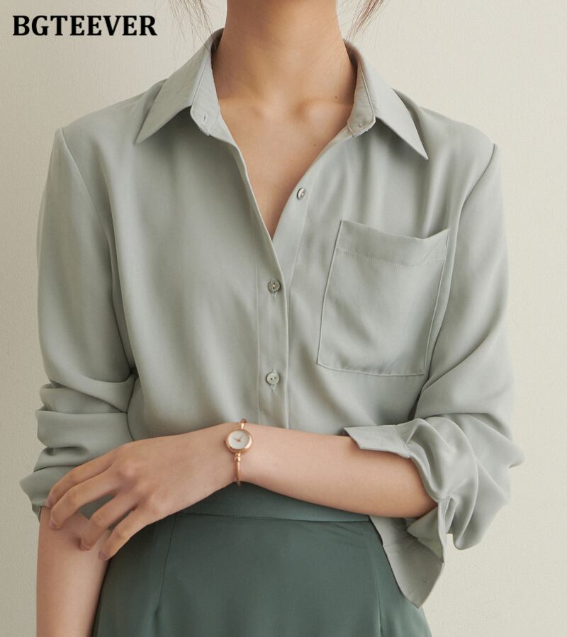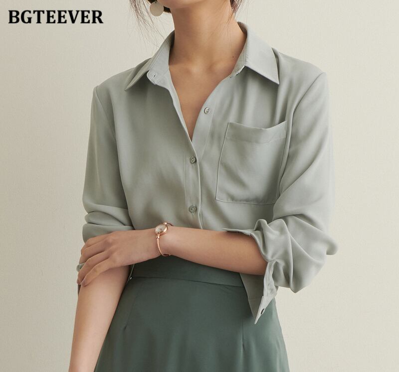 【新作】【送料無料】 BGTEEVERサマーラペルワンポケット女性ブラウスグリーンシャツ女性ルーズシングルブレストトップス 夏物 12b138204848794