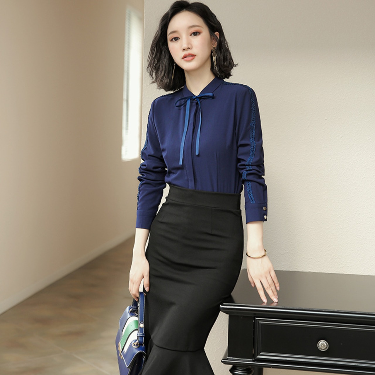 【新作】【送料無料】 直販秋長袖白シャツオールプロ女性シャツクリックラペルデイリーワーク服-アリババ ロング ホワイト オータム 秋物 12b351983019413