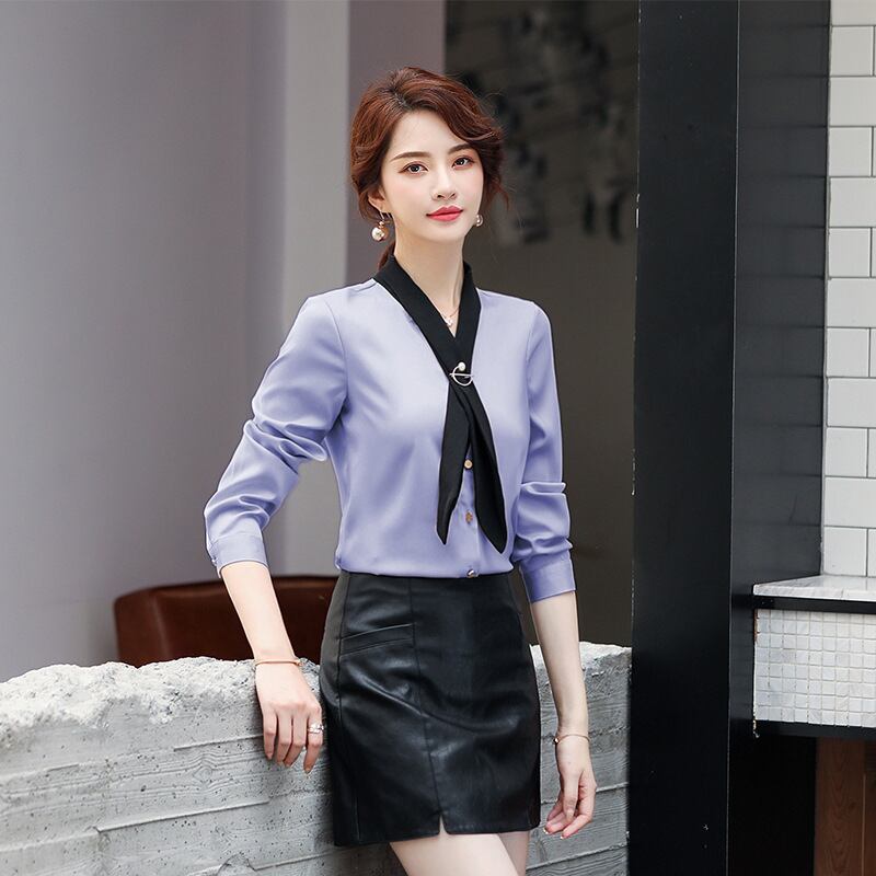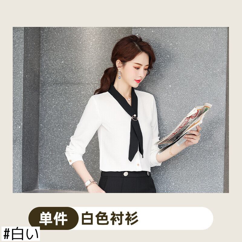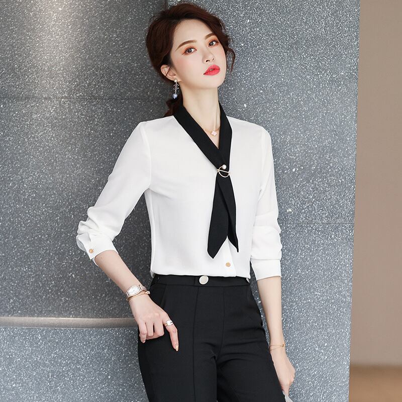 【新作】【送料無料】 Vネックインのトレンディなリボンシャツの本物のバージョンの女性の長袖プラスサイズのルーズ2020新しいシャツ春と秋-アリババ ロング 大きめサイズ スプリング 春物 オータム 秋物 12b241777987205